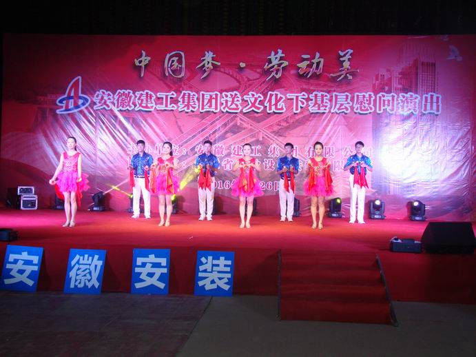 8月26日晚,集團(tuán)公司送文化下基層深入公司白湖監(jiān)獄罪犯醫(yī)療綜合樓項目部慰問演出,白湖監(jiān)獄綜合樓項目部全體管理人員和農(nóng)民工兄弟200多人現(xiàn)場觀看了演出。該工程位于廬江縣白湖鎮(zhèn),這里工作著一批腳踏實地、埋頭苦干、敢于擔(dān)當(dāng)、奉獻(xiàn)企業(yè)的職工,來自集團(tuán)公司各子公司的“演員”,帶著自編、自導(dǎo)、自演的精品文藝作品,將用一場精妙的文化活動,在這里掀起文化與建設(shè)互動的歡樂波瀾。集團(tuán)公司工會主席徐曉光,白湖分局黨委副書記、總經(jīng)理沈建華以及公司有關(guān)領(lǐng)導(dǎo)和參演單位工會主席出席了演出活動。