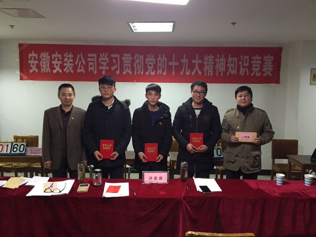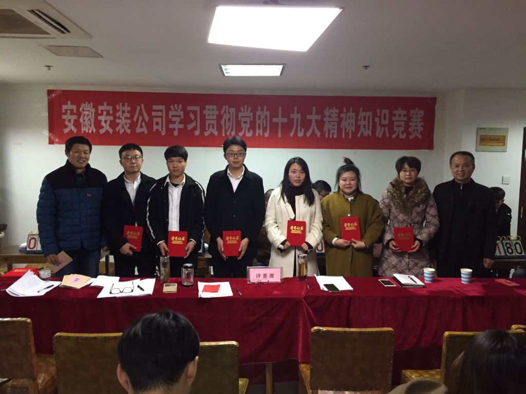 12月6日下午,安徽安裝公司學習貫徹黨的十九大精神知識競賽成功舉辦。來自公司機關及所屬各分公司黨支部8支代表隊24名選手參加比賽。