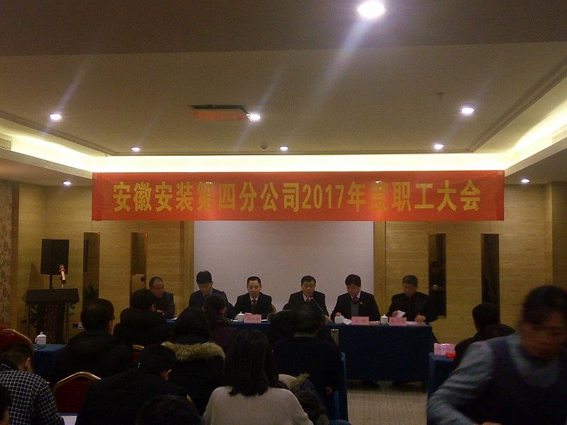 2018年2月1日上午,安徽安裝第四分公司召開2017年度職工大會。公司黨委書記、副總經(jīng)理胡六中,紀(jì)委書記、工會主席李寬旭應(yīng)邀出席了大會。