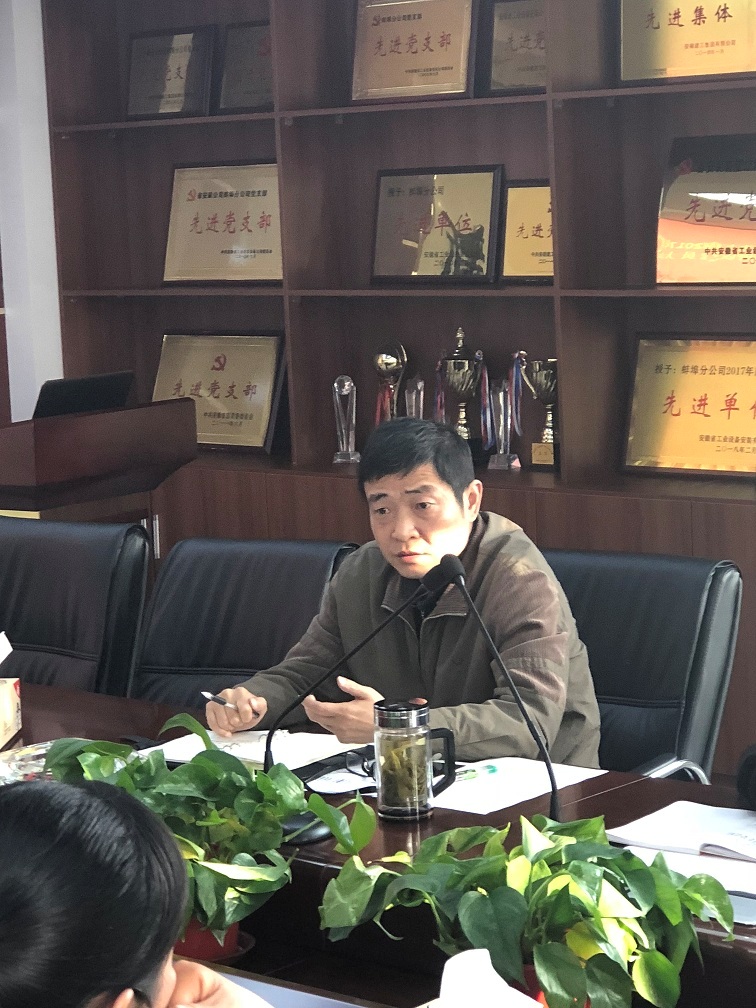 劉安俊副總經理對會議充分肯定的同時,提出了五點要求:一是要把“四個意識”、“四個自信”落到實處,把黨建工作與生產經營、企業發展相結合,杜絕“兩張皮”現象;二是2018年是蚌埠分公司經營的關鍵年,要抓目標、細落實,全力以赴把經營工作做好,培養重要客戶源,形成差異化、專業化經營,建立分公司經營大格局;三是從分公司發展的戰略高度,繼續改善人力資源狀況,進一步提升班子成員、黨員干部的專業水平,發揮示范引領作用;四是加強學習,提升全員對安全的關注度,不斷提高項目質量,嚴把項目成本;五是完善制度建設,強化制度執行力度,加強分公司文化建設。劉安俊強調,2018年開啟發展新征程,希望分公司班子成員、全體黨員以飽滿的熱情投入到工作中,充分發揮模范帶頭作用,在全面完成各項指標的同時不斷提升蚌埠分公司整體實力。