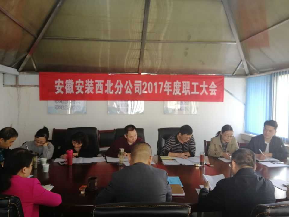 3月29日,安徽安裝公司西北分公司召開2017年度職工大會,公司黨委書記胡六中,紀委書記、工會主席李寬旭出席了大會。