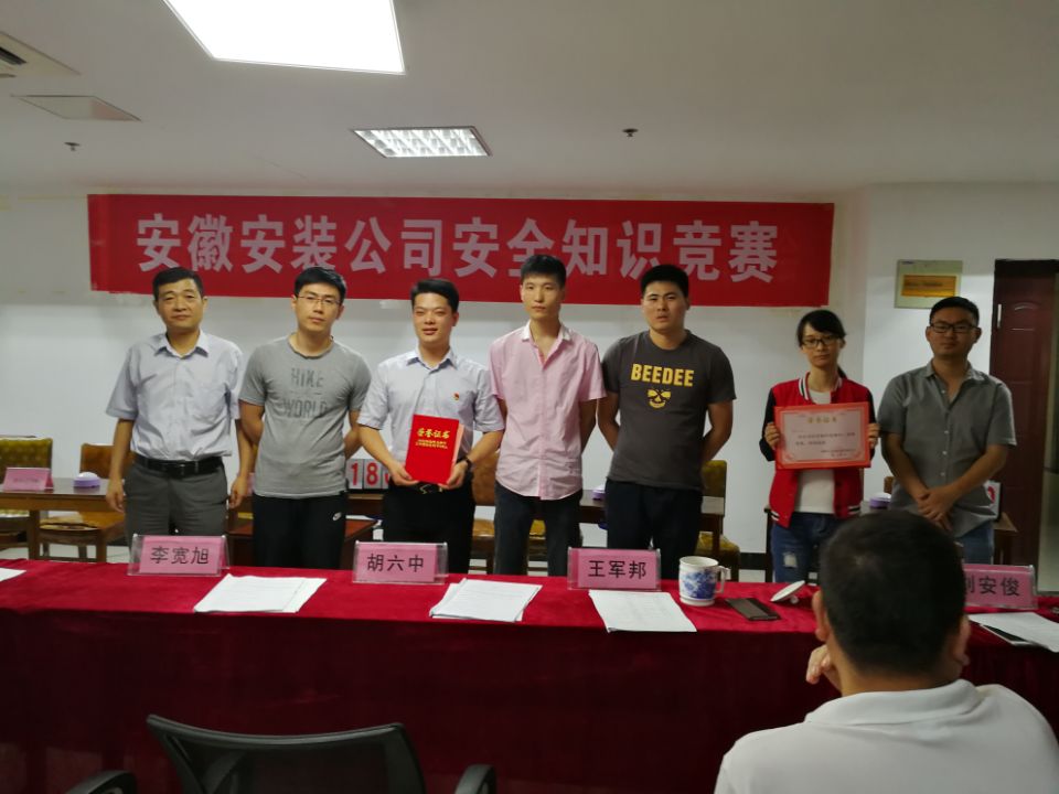 本次活動(dòng)由各分公司、直屬項(xiàng)目部和機(jī)關(guān)各代表隊(duì)參加,現(xiàn)場(chǎng)氣氛熱烈、高潮迭起,知識(shí)競(jìng)賽題型新穎、形式多樣、知識(shí)性與趣味性并重。在難度較大的風(fēng)險(xiǎn)題環(huán)節(jié),選手們紛紛表現(xiàn)出了高昂的斗志和團(tuán)結(jié)協(xié)作的精神面貌。精心設(shè)置的搶答題環(huán)節(jié),使得現(xiàn)場(chǎng)的氣氛幾度達(dá)到高潮。最終,安慶代表隊(duì)奪得桂冠,機(jī)關(guān)一隊(duì)和機(jī)關(guān)三隊(duì)代表隊(duì)獲得“二等獎(jiǎng)”,蚌埠分公司、機(jī)關(guān)二隊(duì)和四分公司代表隊(duì)獲得“三等獎(jiǎng)”。賽后,公司領(lǐng)導(dǎo)為獲獎(jiǎng)選手頒發(fā)證書(shū)、合影留念。