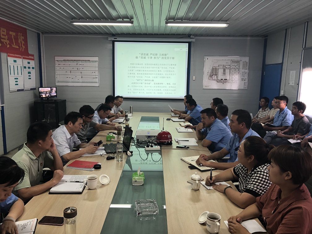 7月31日下午,公司黨委委員、副總經理劉安俊,黨委委員、紀委書記、工會主席李寬旭赴安徽中煙蚌埠卷煙廠項目部開展題為:“‘講忠誠、嚴紀律、立政德’做‘忠誠 干凈 擔當’的黨員干部”的大宣講活動,分公司領導班子成員、各部門人員及項目全體員工參加此次活動。