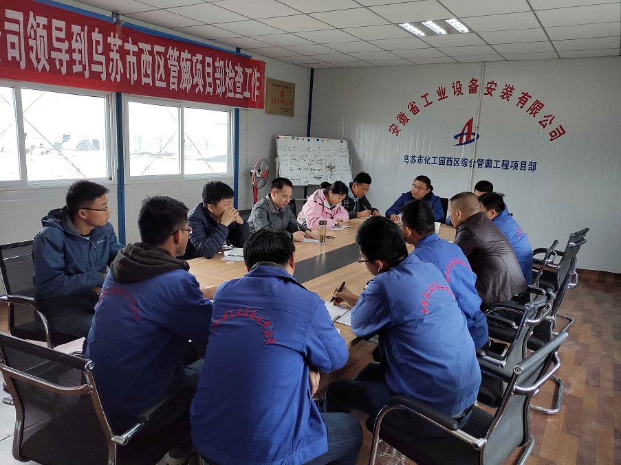胡六中對項目部取得的成績給予充分肯定,并就下一步工作提出六點要求:一要切實關心職工,在艱苦的條件下努力為職工營造良好的工作生活環境;二要緊抓項目團隊建設,做好員工思想教育,努力提高員工綜合素質;三要加強項目黨建工作,促進施工生產經營各項工作順利完成;四要加強項目勞務人員實名制管理工作;五要做好管廊項目的決算工作,保證公司的資金運行正常,同時抓好中水回用工程施工進度、安全生產、工程質量和風險防控工作;六要營造良好學習氛圍,提升員工素養,進一步調動員工的工作熱情,為公司發展建言獻策,貢獻一份自己的力量。