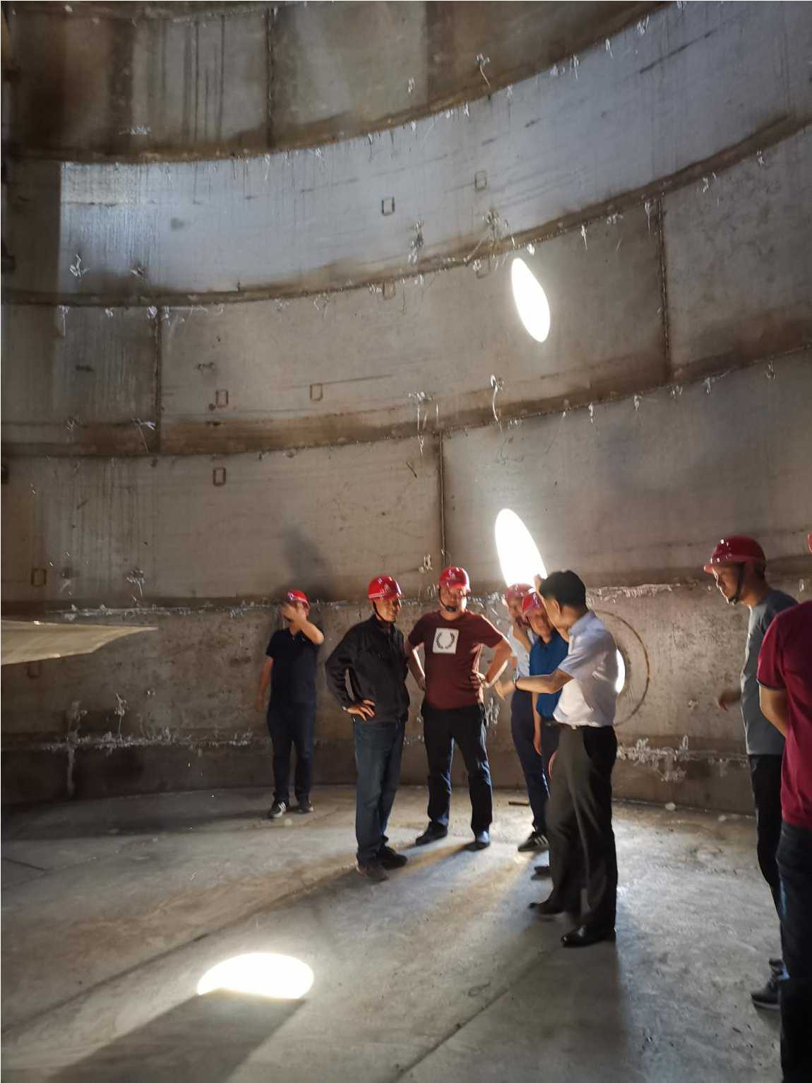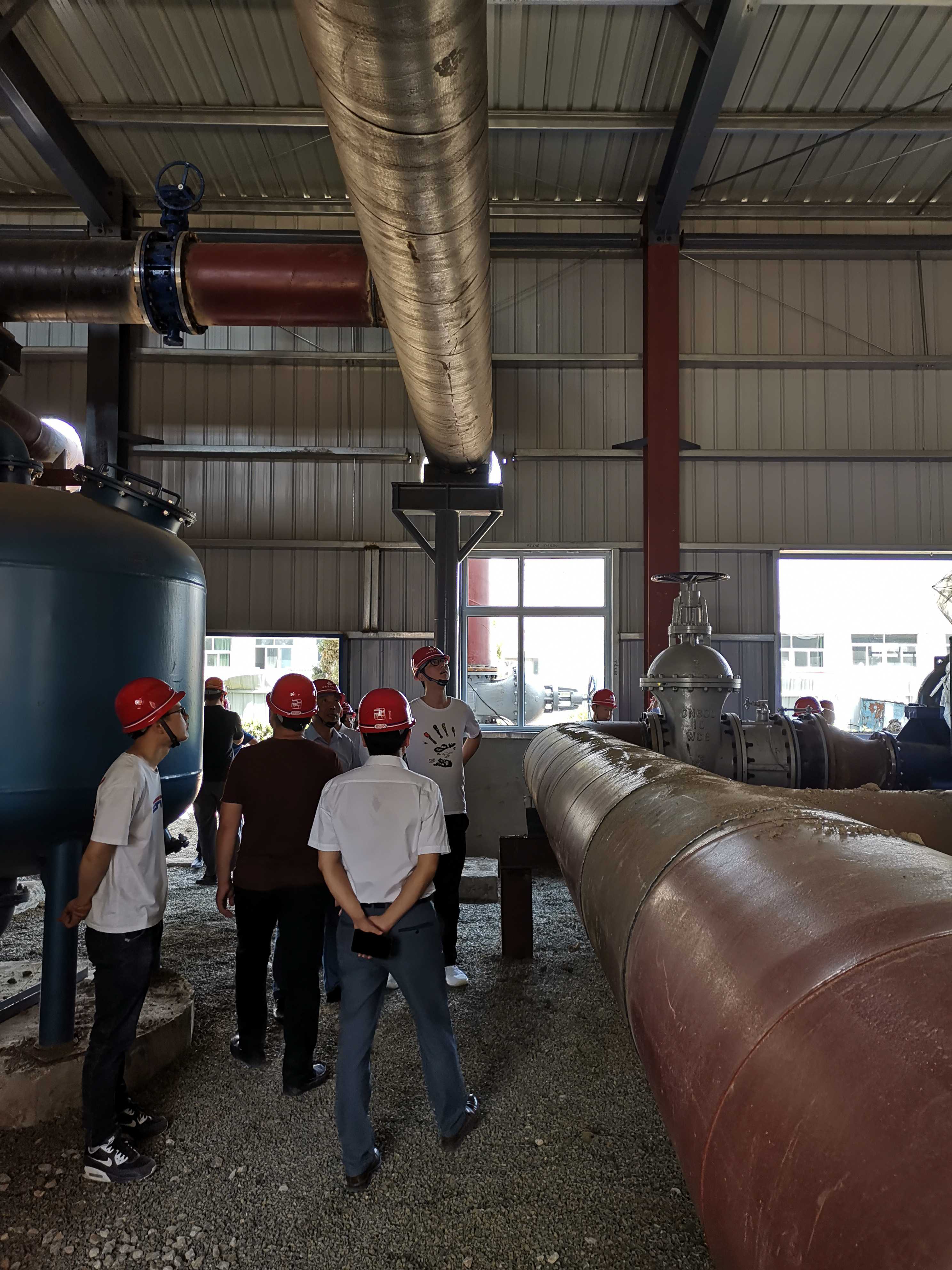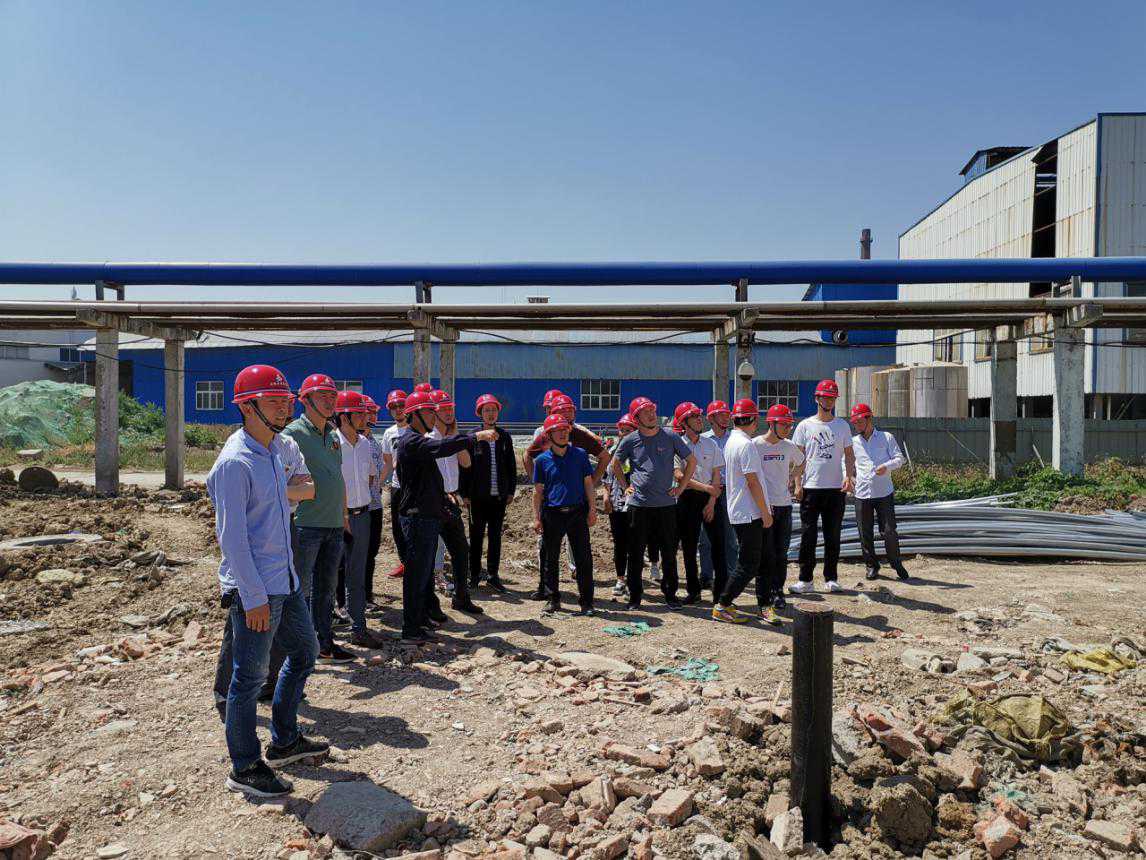 出發前,合肥分公司經理趙永峰作了動員強調,他指出,本次觀摩工業項目是我們學習的榜樣,每一位同志都要珍惜這次難得的學習機會,到工地后要實地細致觀察,認真聽取講解,設身處地思考,力爭取得實效。上午全體人員到達宿州中糧項目工地后,受到了蚌埠分公司領導和項目部全體干部員工的熱烈歡迎,分公司經理趙銘亮、生產副經理張漢軍親自擔任現場講解。參觀隊伍在兩位經理的帶領下,深入現場分別參觀了乙醇罐體群、發酵罐體群、以及冷水機組、工藝管線的安裝現場,兩位經理結合現場工程實體從本項目技術重難點、施工工藝、安全管理等方面向合肥分公司的同事們進行一一的講解。在施工現場,大家結合自身專業實際尋找切入點針對性地進行觀摩學習,唯恐落下一個可以學習的機會,詳細記錄現場優秀的施工做法,針對有疑問的地方及時向相應專業技術負責人詢問解決辦法。