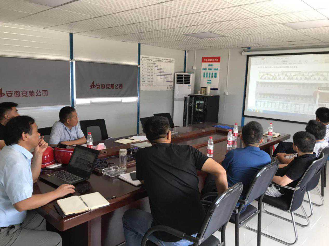 高總一行首先深入施工現(xiàn)場(chǎng),頂著烈日對(duì)鋼結(jié)構(gòu)管桁架組裝現(xiàn)場(chǎng)進(jìn)行了詳細(xì)檢查。隨即召開(kāi)了項(xiàng)目推進(jìn)匯報(bào)會(huì)暨鋼結(jié)構(gòu)施工方案研討會(huì)。會(huì)上,高總詳細(xì)詢問(wèn)項(xiàng)目在進(jìn)度保障、成本管控、夏季防暑降溫、項(xiàng)目后勤保障等方面的措施,并與項(xiàng)目部技術(shù)人員進(jìn)行交流,同時(shí)對(duì)四聯(lián)拱、主桁架等安裝關(guān)鍵節(jié)點(diǎn)進(jìn)行詳細(xì)的技術(shù)指導(dǎo)和交底。他要求項(xiàng)目部一定要嚴(yán)格監(jiān)控鋼構(gòu)變形,強(qiáng)調(diào)對(duì)稱點(diǎn)吊裝,時(shí)刻監(jiān)控結(jié)構(gòu)變形量,形成穩(wěn)定體系后再允許卸載。會(huì)上還就項(xiàng)目存在的困難等方面給與了詳細(xì)指導(dǎo)和解答。