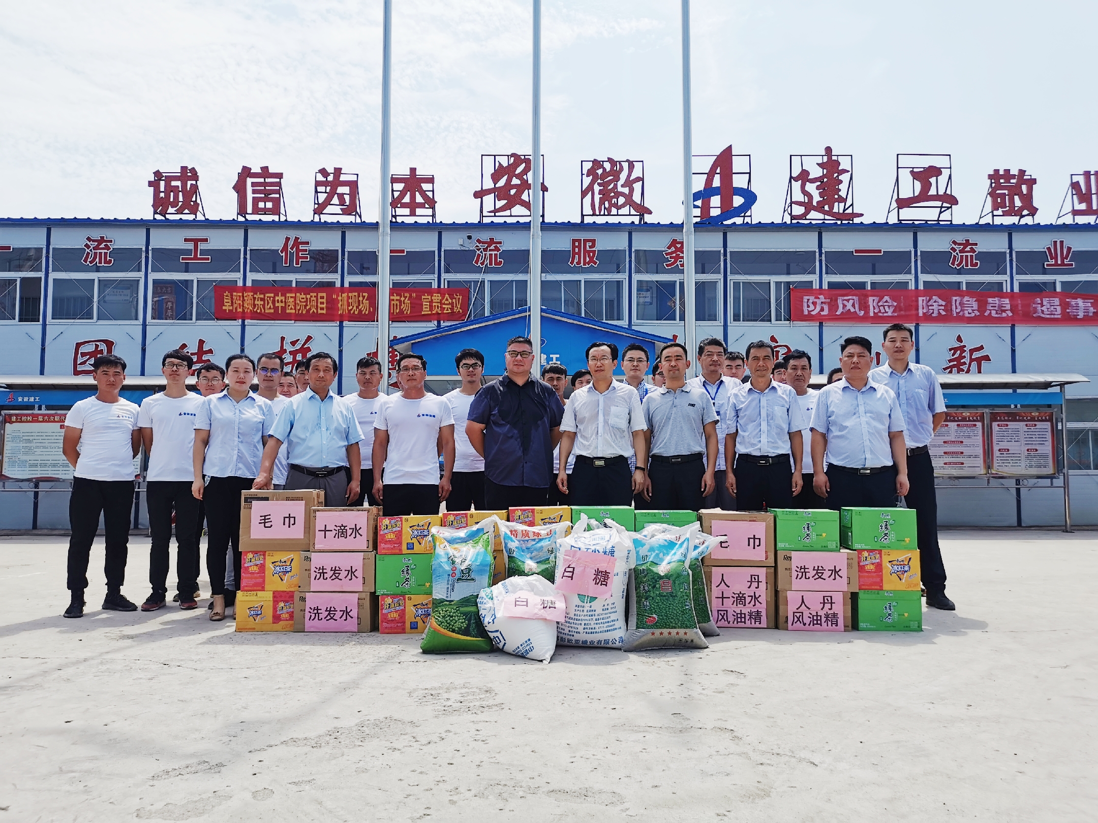 連日來,烈日炎炎,熱浪滾滾,氣溫最高達到37℃,高溫酷熱下,生產(chǎn)一線廣大員工的身心健康牽動著集團公司領(lǐng)導的心。8月1日上午,集團控股公司副總經(jīng)理李有貴、股份公司副總經(jīng)理黃代深入安徽安裝公司阜陽潁東區(qū)中醫(yī)院PPP項目慰問調(diào)研指導工作。公司副總經(jīng)理高飛,紀委書記、工會主席李寬旭陪同慰問調(diào)研。