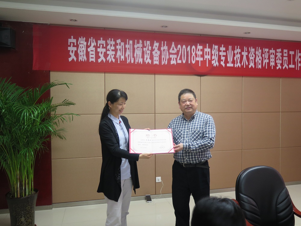 為深入學(xué)習(xí)了解職稱評審相關(guān)政策,進一步提高評委業(yè)務(wù)素質(zhì)和職稱評審質(zhì)量,協(xié)會按照評審要求,經(jīng)過前期精心準備召開了本次會議。首先李會長宣讀了省人社廳《關(guān)于同意成立機電安裝和機械設(shè)備中級專業(yè)技術(shù)資格評審委員會的函》(皖人社函〔2017〕486號),王會長依次向評委們頒發(fā)《中級專業(yè)技術(shù)資格評審委員會》委員聘書。秘書長杜慶梅宣讀省人社廳關(guān)于印發(fā)《安徽省職稱評審委員會組織管理辦法》的通知(皖人社發(fā)〔2018〕3號),現(xiàn)場組織大家學(xué)習(xí)相關(guān)規(guī)定。