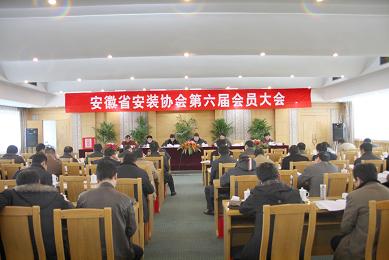 安徽省安裝協會第六屆會員大會于2009年12月28日在安徽合肥八一賓館隆重召開。來自全省50多家企業78名新老會員代表參加了此次大會。中國安裝協會秘書長楊存成,安徽省建設廳副廳長李建、副巡視員王茂新,安徽省民政廳社團管理局王世剛處長等領導蒞臨會議。中國安裝協會、上海市安裝協會、江蘇省安裝行業協會、浙江省安裝行業協會、山東省安裝協會、四川省建筑業協會及安徽省建筑業協會等兄弟協會發來賀信、賀電。