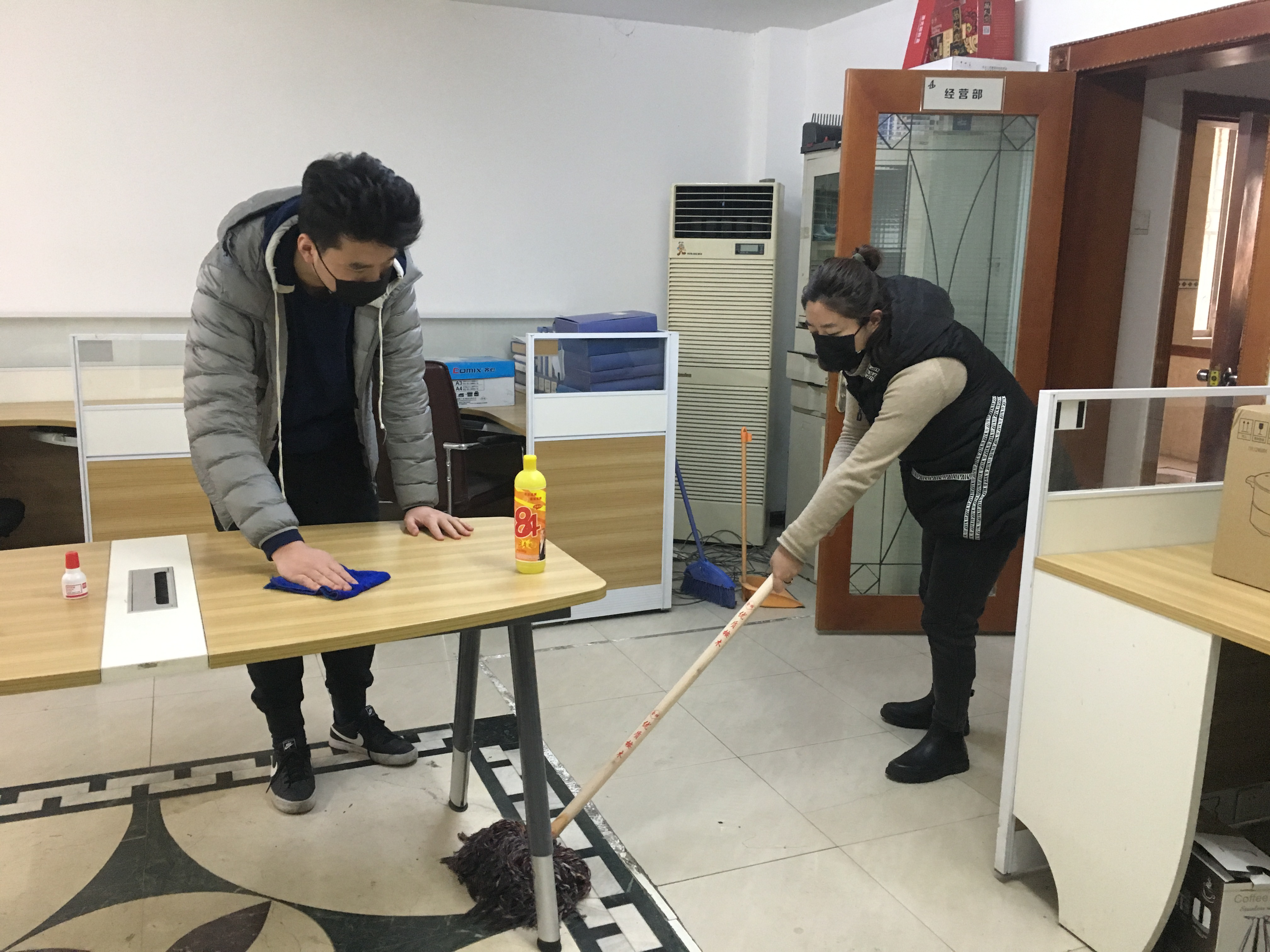 在分公司工會的號召下,大家紛紛開始了辦公室的消毒清理活動,針對個人辦公室衛(wèi)生及公共區(qū)域進行了整體消毒和清理,對于整個辦公室進行了徹底的大掃除。