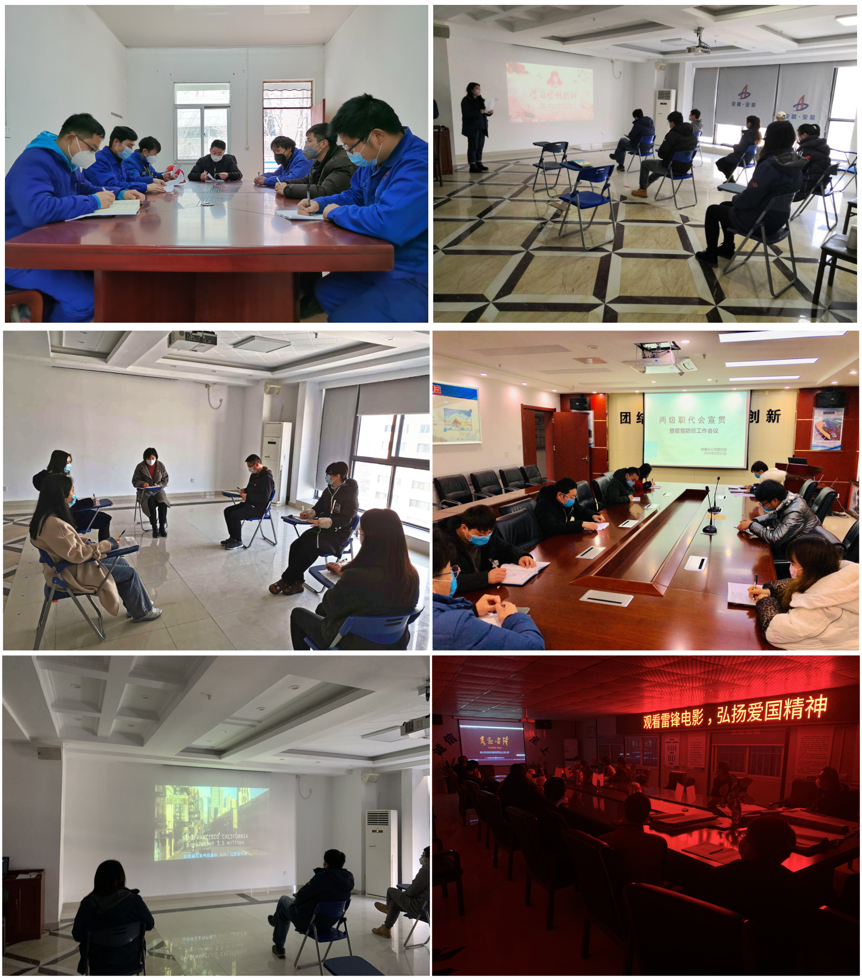 一是扎實開展理論學習,提高思想認識。公司團委組織召開團委工作會議,宣貫集團、公司兩級職代會精神,傳達集團公司團委工作會議工作部署,為統籌推進疫情防控和復工復產充分發揮生力軍和突擊隊作用提出要求,并對2019年度集團青年文明號驗收及2020年創建工作、志愿者服務月活動、團費收繳和智慧團建等具體工作作出安排。各團支部積極開展理論學習并深入討論交流,宣貫兩級職代會精神,動員全體團員青年,以實際行動“學雷鋒”,充分發揮“生力軍”和“突擊隊”作用。安慶分公司團支部學習雷鋒生平事跡及《雷鋒的故事》書籍,使團員青年深刻體會雷鋒精神的含義,體驗雷鋒精神的魅力,增強集體凝聚力;房建(裝飾)分公司團支部、合肥分公司團支部組織團員青年觀看《青春雷鋒》等影片,號召全體團員起先鋒模范作用,帶頭做榜樣,宣傳雷鋒精神,踐行雷鋒精神;蚌埠分公司團支部以“學雷鋒”志愿服務月為主題,對“如何將雷鋒精神和志愿服務精神在共戰疫情行動中發揚光大”展開討論交流。大家精神為之振奮、積極發言、建言獻策,了解雷鋒的感人事跡、把握雷鋒的精神實質。