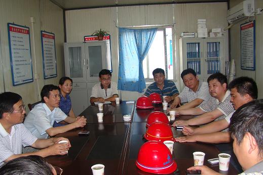 張書記一行代表集團公司向堅守崗位的職工表示親切慰問,并認真聽取了項目部經理郭左明有關工程概況、項目安全生產與保護、開展“雙爭”勞動競賽、“黨員先鋒號”活動和創文明示范工地等工作匯報。張書記強調:項目部要密切關注高溫期間職工的生產、生活情況,要特別重視安全生產,扎實地做好各項基礎工作,保質保量完成工作任務,樹立安徽省安的品牌形象。王總代表公司向集團領導冒著酷暑親臨一線慰問表示衷心的感謝,并表示:全體省安人將繼續發揚“特別能吃苦、特別能戰斗”的精神,戰勝酷暑,奮力攻堅,保證各項任務順利完成。