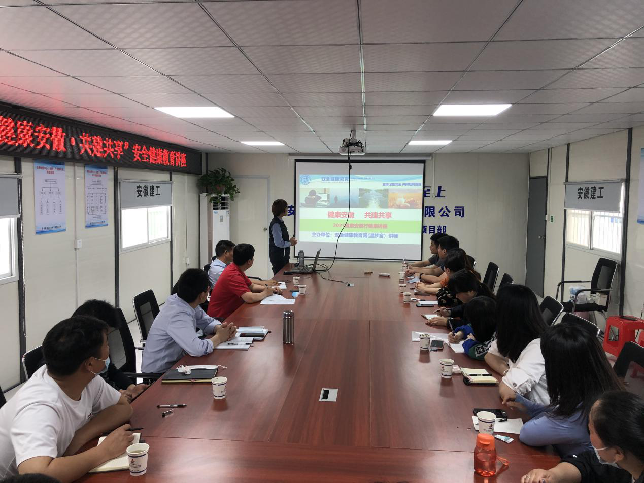 為積極響應安徽省委有關部署,加強健康教育,提升健康防護和掌握必備的急救能力,倡導科學文明健康的生活方式,進一步增強項目管理人員的安全意識,提高從業人員的安全技能,5月21日下午,公司安全管理部副經理蔣秀正攜安全健康教育網安徽站宣教科主任溫夢含赴房建(裝飾)分公司潤迅數據中心(合肥)產業園項目組織開展安全健康教育講座。分公司黨支部書記王偉、副經理王傳林,分公司機關人員及項目全體職工參加了講座。
