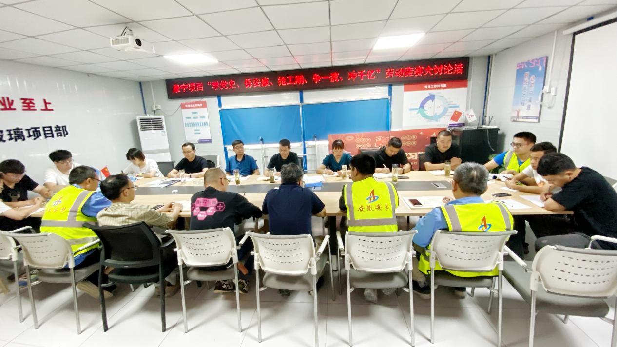 安徽安裝在蚌埠康寧硼硅藥用玻璃 項目開展“學黨史 保安康 搶工期 爭一流 沖千億”勞動競賽大討論活動