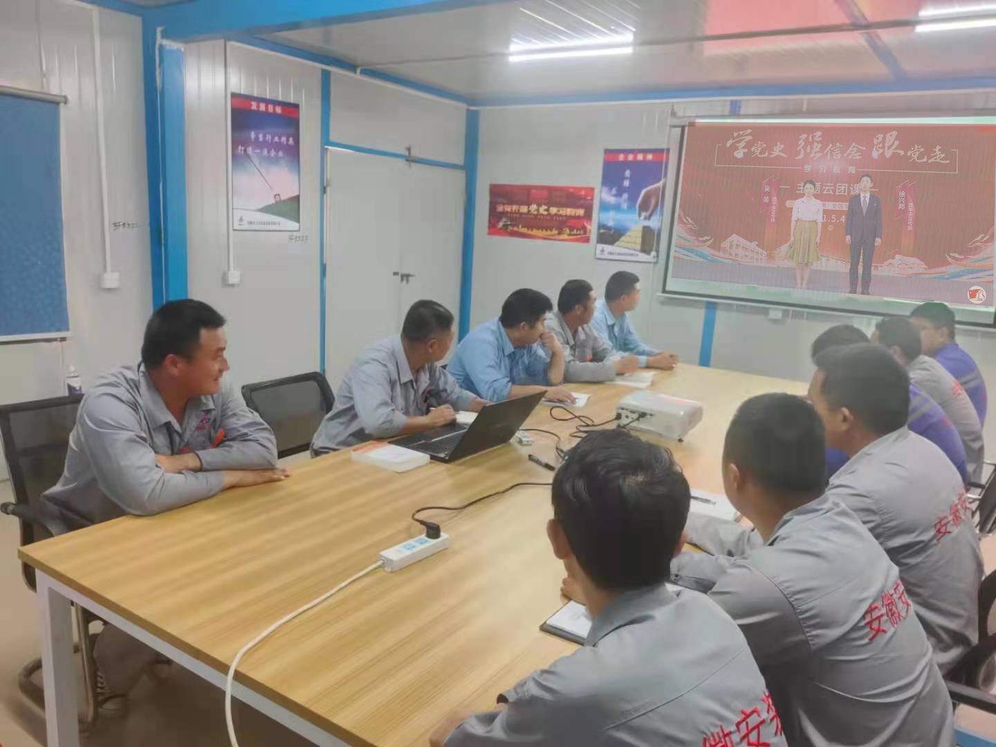 項目部積極響應公司黨史學習教育要求,促進黨史學習充分融入生產一線,營造出濃厚的“學黨史、促生產”的良好氛圍。5月1日,項目部開展了黨史學習教育交流會,會上項目部黨員皮軍同志帶領大家集中學習了《中國共產黨基本知識》并開展了黨史學習交流討論。5月4日,項目部組織團員青年通過線上觀看節(jié)目的方式觀看了由共青團中央、全國學聯舉辦的“學黨史、強信念、跟黨走”大型網絡直播主題云團課學習活動,在歌聲中感受激情燃燒的光輝歲月,在影像影視中見證時代的發(fā)展、歷史的變遷。