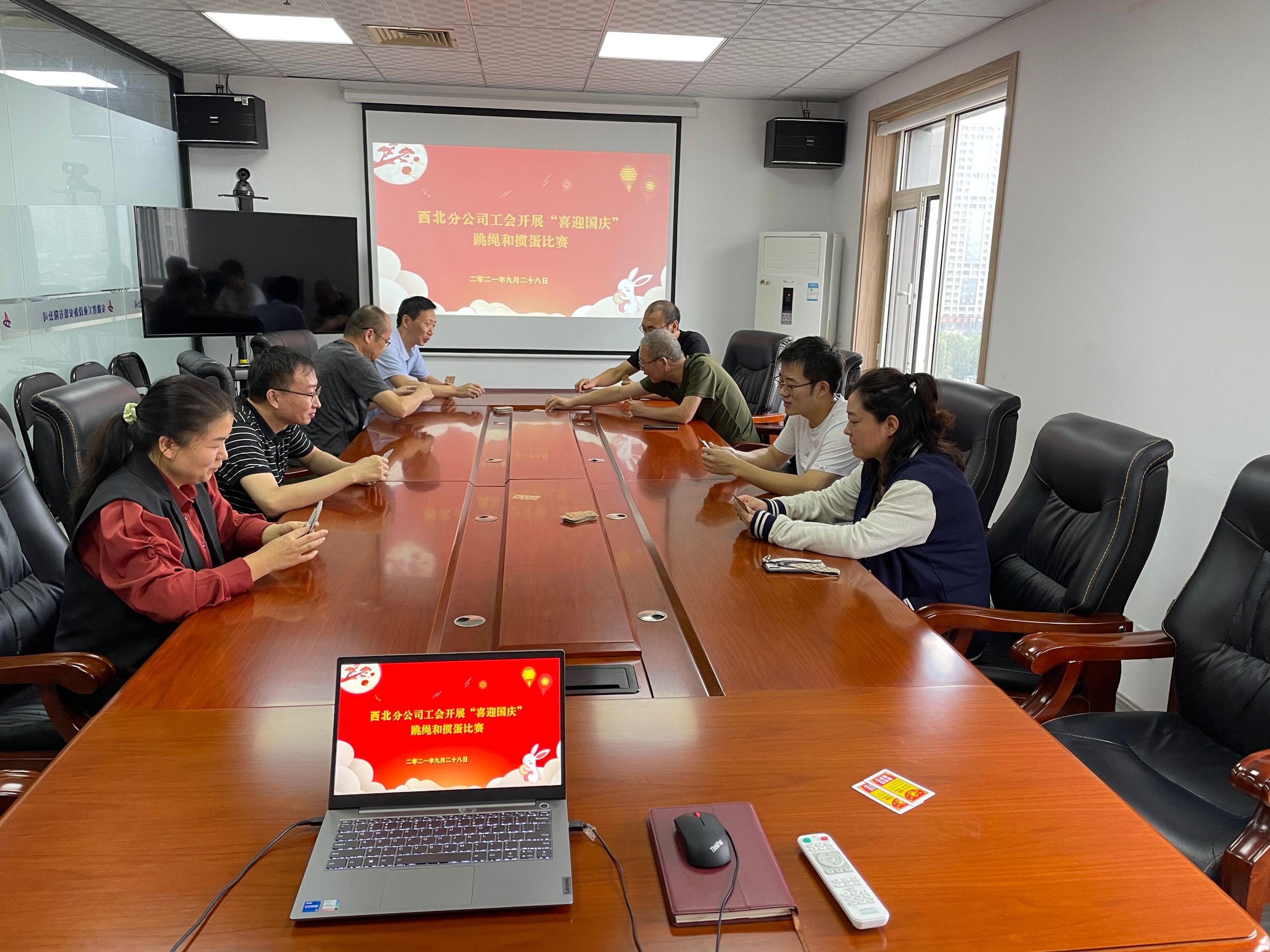 國慶佳節來臨之際,為了增強分公司員工的凝聚力與向心力,調動員工的工作熱情,9月28日上午,西北分公司工會組織開展“喜迎國慶”跳繩和摜蛋比賽,活動由工會主席許洋主持,分公司全體員工參加比賽。