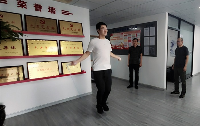 活動開始前,許洋先就此次活動開展的內容及比賽規則進行了宣布。比賽還未開始,選手們們個個摩拳擦掌、準備一顯身手。隨著一聲哨響,比賽開始,選手們手中揮舞著跳繩,腳下飛快跳動著。手中的跳繩在空中劃出了優美的弧線。“170.171.172......加油”!活動現場氣氛熱烈,喝彩聲此起彼伏。選手們額頭上浸出的汗水與漲紅的臉上,最終決出了跳繩比賽的冠亞季軍。接下來,在分公司會議室又進行了摜蛋比賽,大家圍成一桌,你一言我一語的開始了競賽活動。