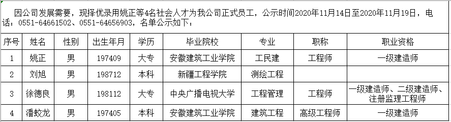 2020年擬錄用社會(huì)人才公示