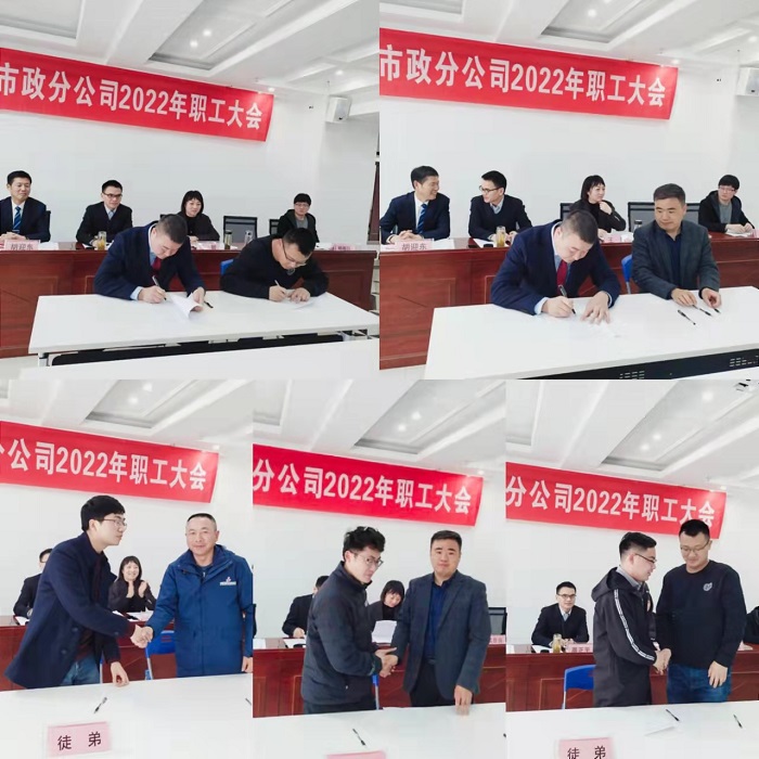 會上,分公司領導班子與部門及項目部簽訂了《2022年度經營業績責任書》,舉行了2022年度分公司“師徒結對協議”簽約儀式,公司考核組還組織進行了公司優秀年輕干部民主推薦。