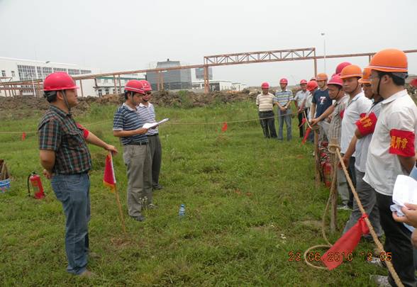 為全面開(kāi)展好“全國(guó)安全生產(chǎn)月”應(yīng)急預(yù)案演練周活動(dòng),切實(shí)提高企業(yè)應(yīng)對(duì)突發(fā)火災(zāi)事故處理能力和水平,2010年6月23日,公司保衛(wèi)處和生產(chǎn)處牽頭在肥東豐樂(lè)農(nóng)化中間體項(xiàng)目現(xiàn)場(chǎng)進(jìn)行了一次火災(zāi)事故應(yīng)急演練,副總經(jīng)理劉安俊擔(dān)任總指揮,各項(xiàng)目部均派人參加。