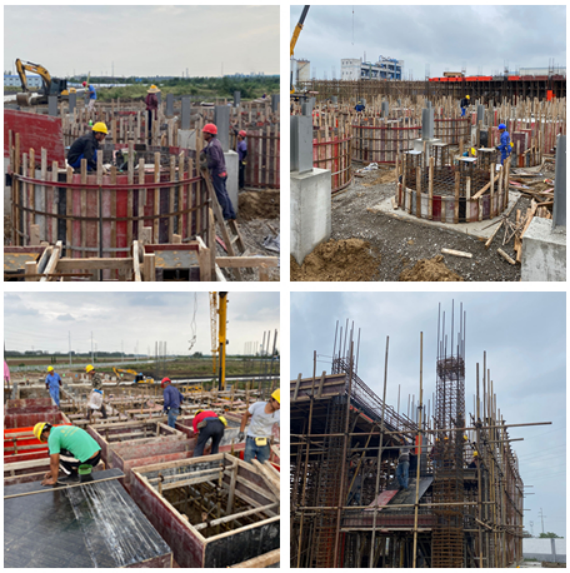 新宇藥業(yè)微生物藥物生產(chǎn)建設(shè)項目一期工程 罐體基礎(chǔ)設(shè)施;發(fā)酵車間一層頂腳手架搭設(shè)、模板安裝;動力車間鋼筋綁扎