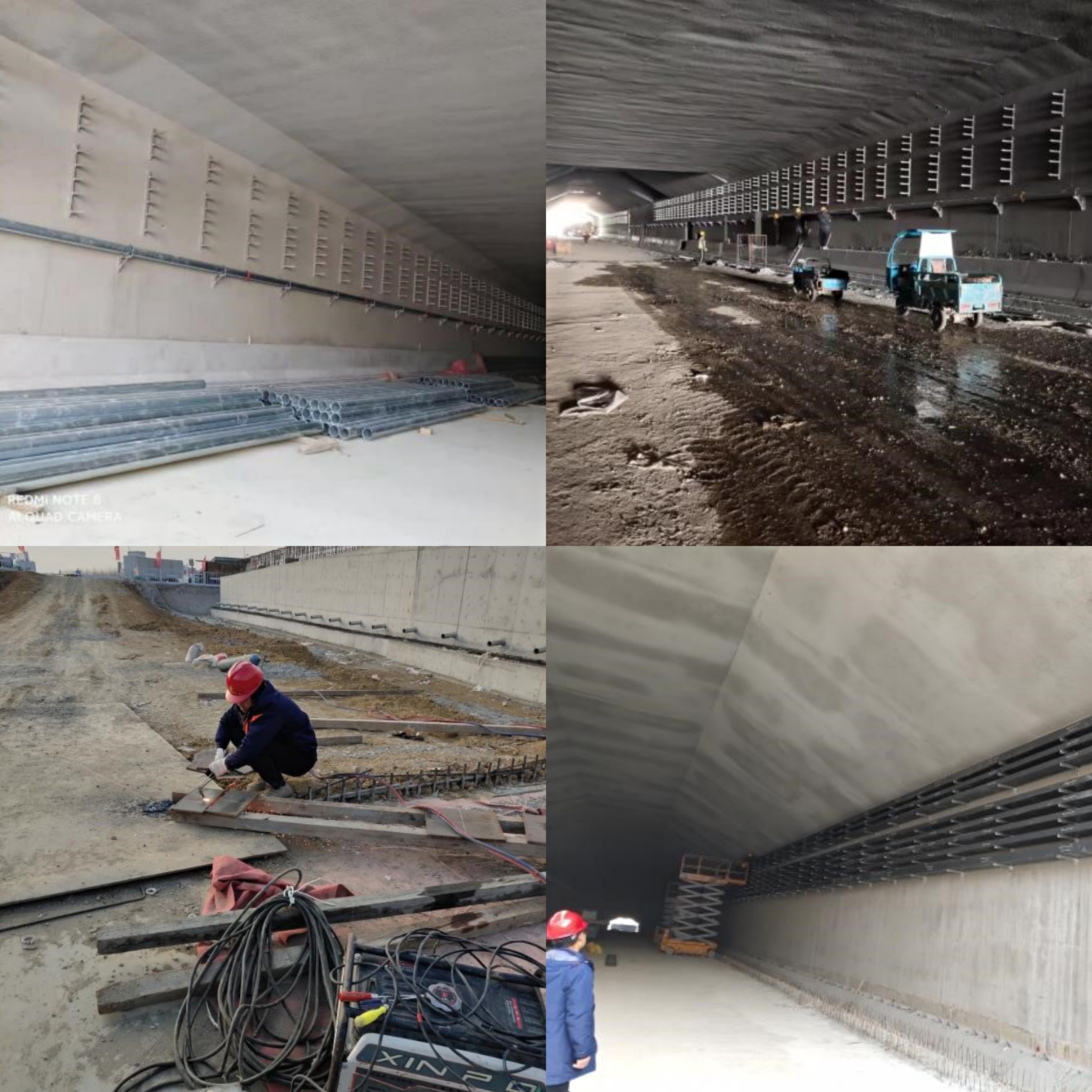 東側敞口段300多米是完成總包單位下達的“樣板段年前完工”目標任務的重點實施地段,為了保證施工進度,項目部管理人員靠前指揮,認真分析,研判施工進度,梳理現場存在的問題,共同探討解決的方案,針對隧道作業面有限,人員進出不便等諸多困難,項目部采取“白加黑”“5+2”,勞務班組交替作業的方式,做到人休工地不停歇。項目施工員、安全員充分發揚“釘子”精神,長時間釘在施工現場,旁站指導及監督檢查,確保了鋼板切割、橋架支架的制作與安裝、橋架的安裝、消防管道的安裝等等,各項工作安全快速向前推進。