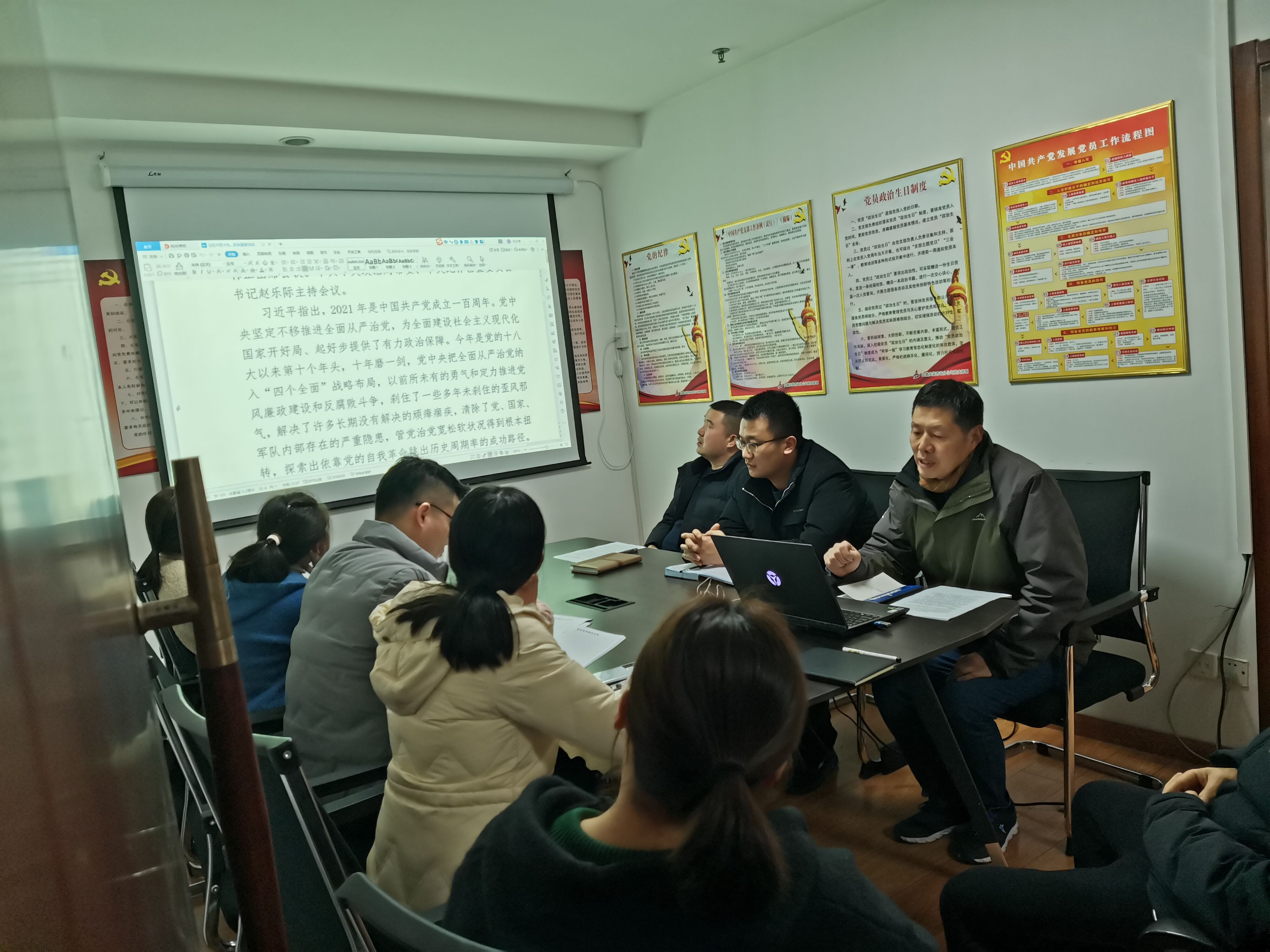 1月27日下午,市政分公司黨支部在分公司會議室召開全體黨員大會,學習貫徹中國共產黨第十九屆中央紀律檢查委員會第六次全會精神。分公司全體黨員干部參加學習會,會議由黨支部書記胡迎東主持。