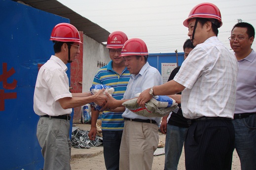 張書記一行首先代表集團公司領(lǐng)導向堅守在項目上的職工表示親切的慰問。隨后又認真聽取了項目部經(jīng)理李紹林就項目工程概況、項目安全生產(chǎn)、安全保護及創(chuàng)文明示范工地等工作匯報。張書記勉勵職工要在高溫季節(jié)努力做好本職工作,項目部要處處做好防暑降溫工作,保證生產(chǎn)安全,保護好職工的身體健康,保質(zhì)保量的完成工作任務(wù),樹立安徽省安的品牌形象,把品牌打出去,逐步開拓市場。最后,戴書記代表省安向集團領(lǐng)導冒著酷暑親臨慰問表示衷心的感謝。他表示:全體省安人將繼續(xù)發(fā)揚特別能吃苦、特別能戰(zhàn)斗的精神,戰(zhàn)勝酷暑,奮力攻堅,保證各項工程任務(wù)順利完成。
