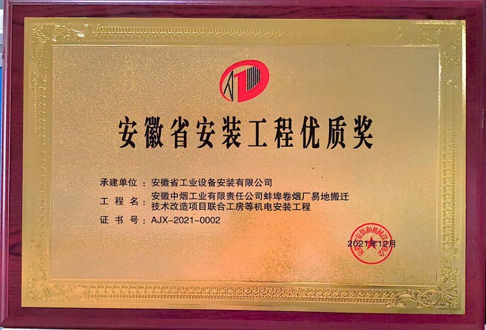 近日,安徽省安裝和機(jī)械設(shè)備協(xié)會(huì)第八屆會(huì)員代表大會(huì)在合肥順利召開,會(huì)議頒發(fā)了“2021-2022年安徽省安裝工程優(yōu)質(zhì)獎(jiǎng)”,我單位承建的安徽省中煙工業(yè)有限責(zé)任公司蚌埠卷煙廠易地搬遷技術(shù)改造項(xiàng)目聯(lián)合工房等機(jī)電安裝工程、康寧藥用硼硅玻璃管廠房設(shè)施建設(shè)工程(安裝工程)分別榮獲2021年度“安徽省安裝工程優(yōu)質(zhì)獎(jiǎng)”、2022年度“安徽省安裝工程優(yōu)質(zhì)獎(jiǎng)”榮譽(yù)稱號(hào)。