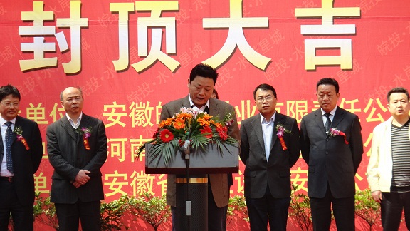 2011年3月31日上午10點58分,滁州分公司承建的皖投水岸星城一期三標段項目封頂慶典儀式成功舉行。公司副總經理劉安俊主持封頂慶典儀式,戴樹明書記致辭祝賀。
