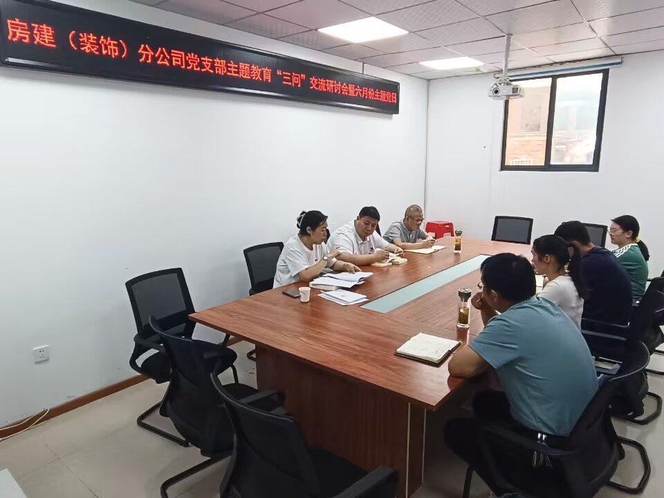 為深入學(xué)習(xí)貫徹習(xí)近平新時(shí)代中國(guó)特色社會(huì)主義思想主題教育,抓實(shí)支部理論學(xué)習(xí),努力在以學(xué)鑄魂、以學(xué)增智、以學(xué)正風(fēng)、以學(xué)促干方面取得實(shí)效。6月16日下午,房建(裝飾)分公司黨支部在會(huì)議室組織召開(kāi)主題教育“三問(wèn)”交流研討會(huì)暨六月份主題黨日活動(dòng)。會(huì)議由支部書(shū)記程茂麗主持,支部全體黨員參加。