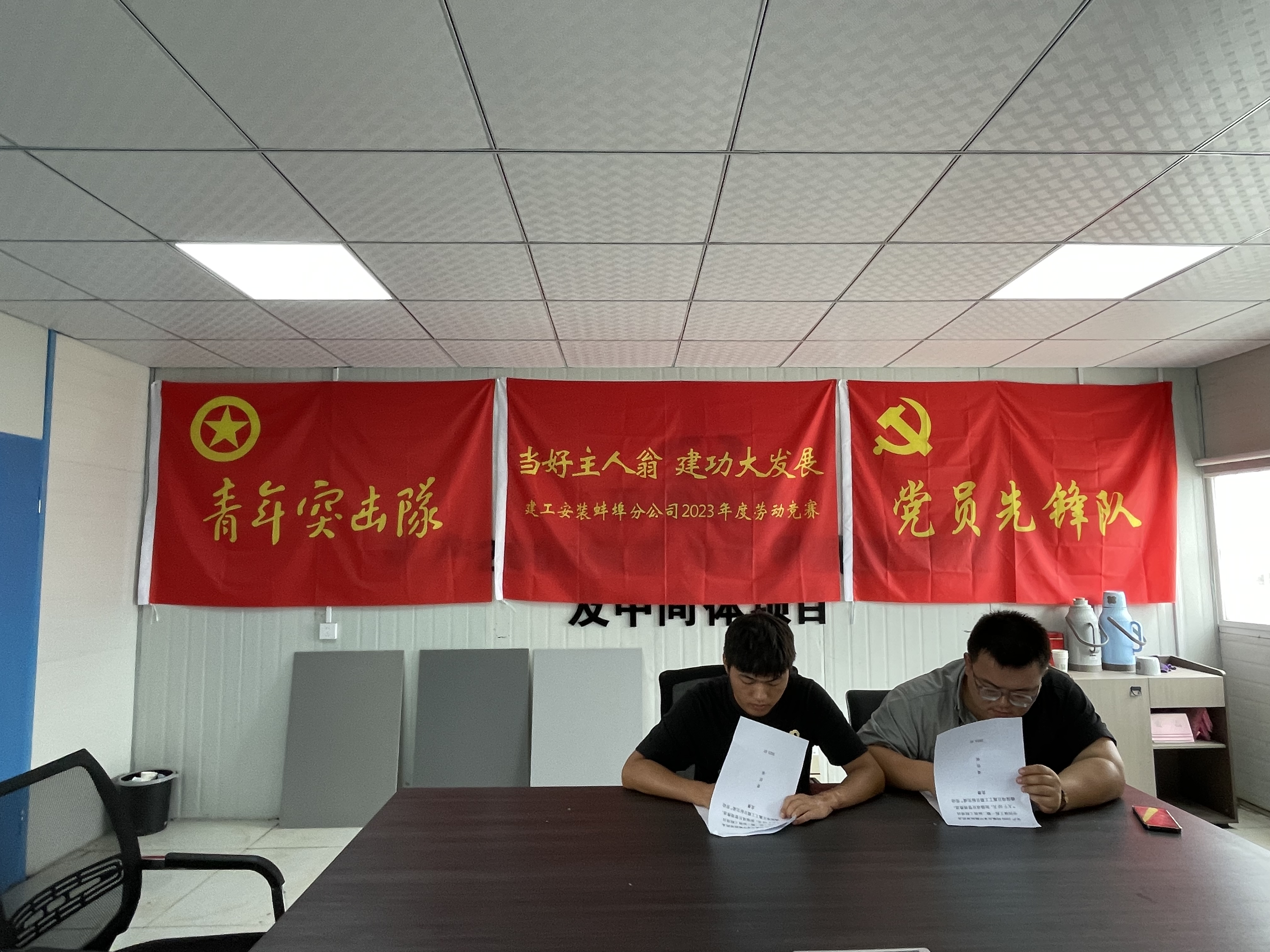 會上,參賽人員開展了勞動競賽大討論,項目代表及班組代表共同簽署“勞動競賽責任狀”,施工班組代表作表態發言。