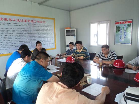 項目部土建、安裝負責人對現(xiàn)階段的工程進展、質量、安全情況進行了匯報,滁州分公司副經(jīng)理、該項目總負責李多德對資金回收及下一步安裝工作做了具體匯報。