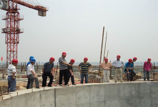 王總一行親臨現(xiàn)場一線,深入了解現(xiàn)場實際情況,并現(xiàn)場給予指導。隨后立即召開全體項目管理人員會議,對該工程工作重點由土建轉為安裝進行指導和安排。