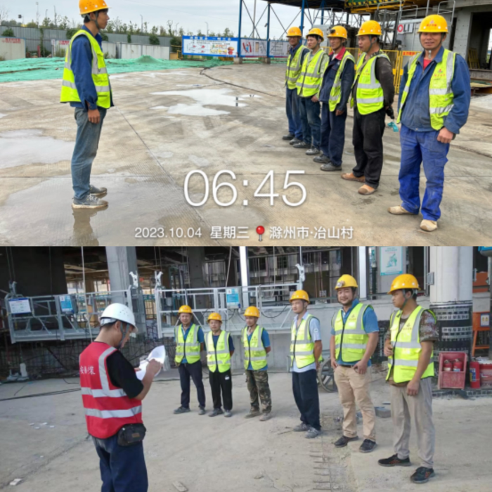 桃花科創(chuàng)項目、滁州天長項目在節(jié)假日期間,在崗施工作業(yè)人員,用自己的實際行動表達著對工作的熱愛,他們堅守崗位,堅持每日晨會開展電梯安裝知識培訓,強化安全防范意識,力求“安全第一”,保障安全與質(zhì)量,全力確保項目的安全平穩(wěn)運行。