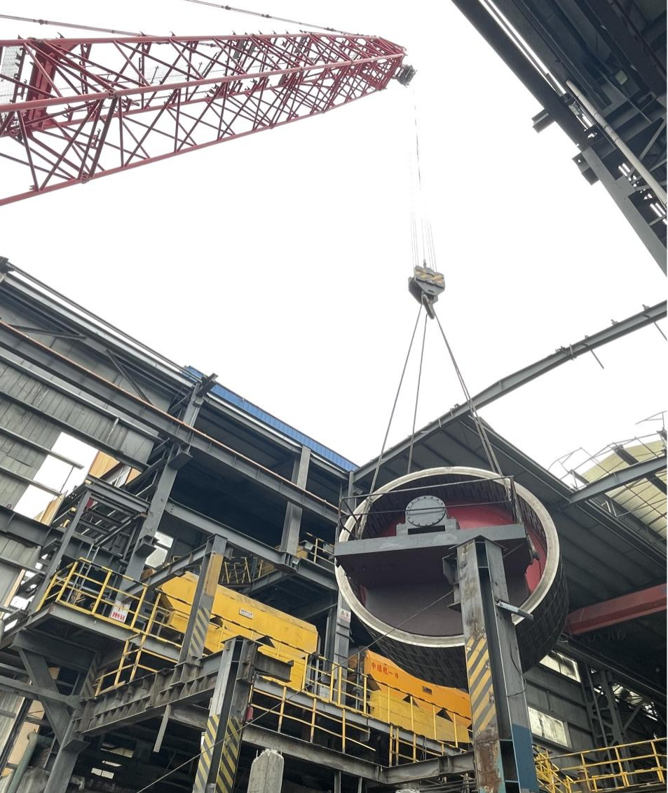 現(xiàn)場強(qiáng)磁機(jī)共3臺,最大單體配件重量為81噸,最遠(yuǎn)吊裝半徑大達(dá)28米,全部安裝在老廠房內(nèi),吊裝精度要求高,如何保證設(shè)備構(gòu)件在吊裝時不發(fā)生扭曲變形是工程的重點(diǎn)、難點(diǎn)。整個吊裝過程中,項(xiàng)目團(tuán)隊(duì)通力合作,精心策劃,科學(xué)組織,合理安排,3臺強(qiáng)磁選機(jī)吊裝的順利完成,為后續(xù)安裝工作打下了堅(jiān)實(shí)基礎(chǔ)。