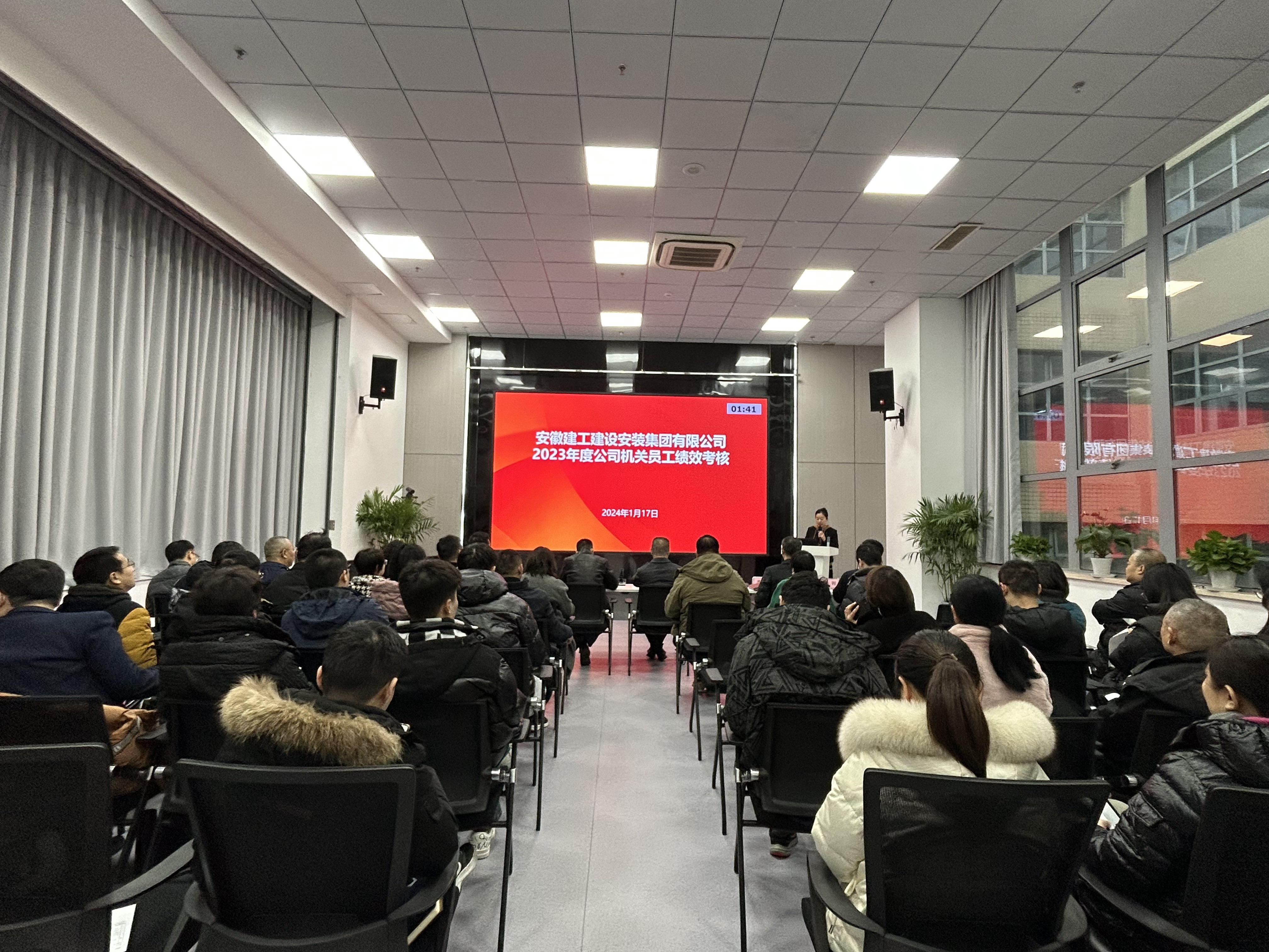 近日,建工安裝集團組織開展2023年度機關部門和員工考核會議,公司領導班子成員、機關全體職工共50余人參加會議。