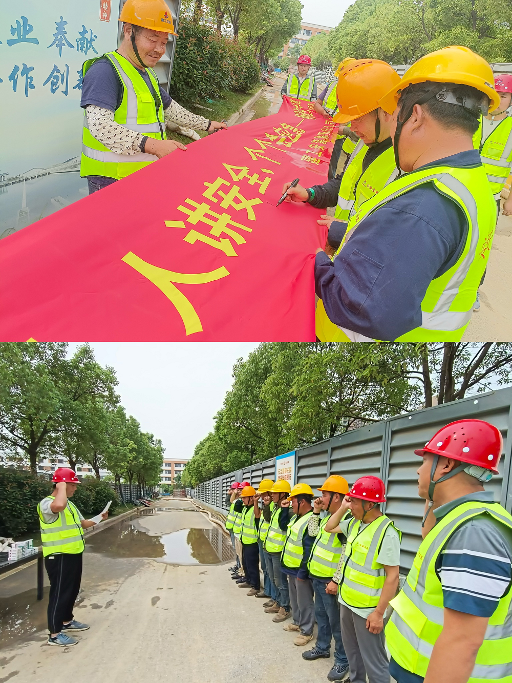 會上,還組織大家觀看了《安全生產責任在肩》、《生命通道》警示教育片,隨后全體成員進行了安全宣誓,并在橫幅上鄭重地簽下了自己的名字。