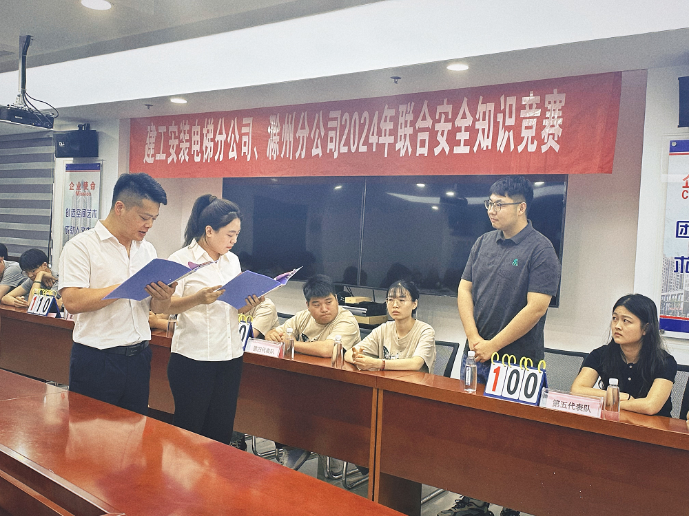 為提升員工安全管理意識(shí),推動(dòng)安全月活動(dòng)走深走實(shí),6月14日下午,電梯分公司、滁州分公司聯(lián)合舉辦以“人人講安全、個(gè)個(gè)會(huì)應(yīng)急——暢通生命通道”為主題的安全知識(shí)競(jìng)賽。公司工程管理部安全辦公室負(fù)責(zé)同志擔(dān)任比賽評(píng)委,電梯分公司、滁州分公司領(lǐng)導(dǎo)班子、在肥員工參加活動(dòng)。