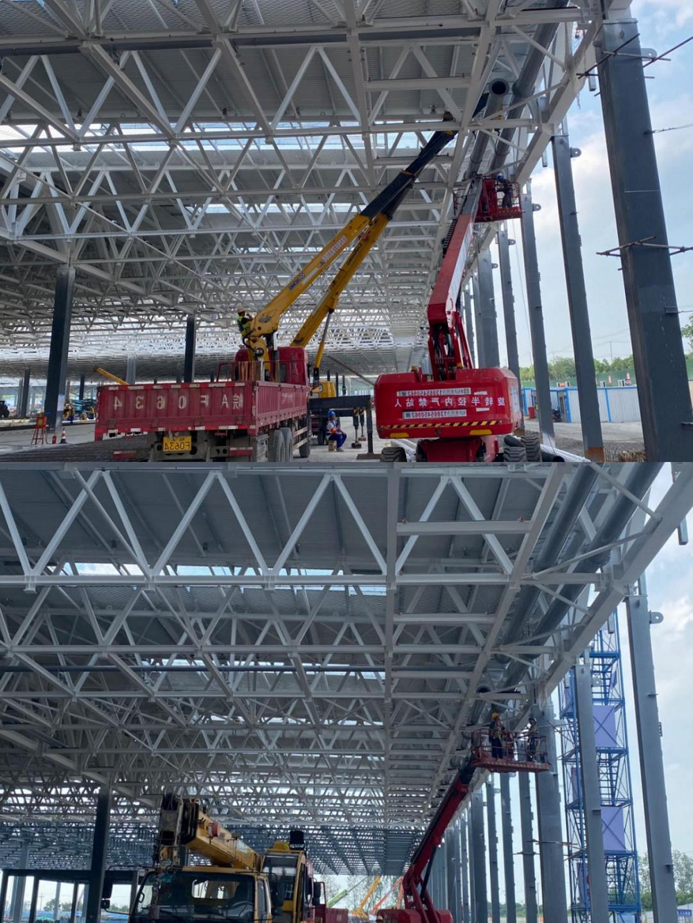 該項目工期緊、任務重,項目部開足馬力搶抓節(jié)點,充分合理調配人、材、機及資金等資源。為搶抓晴好天氣,錯峰高溫時段,管理人員靠前指揮,作業(yè)人員并聯(lián)推進、多點開花,加班加點、挑燈夜戰(zhàn)。在確保安全質量的前提下,優(yōu)化施工方案,緊跟鋼結構及土建單位的施工進度“見縫插針”,全力推進本項目的建設進度。