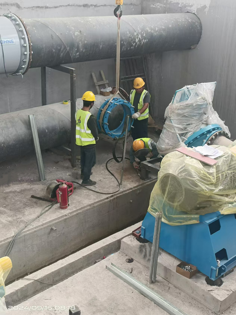 圖為安裝鼓風(fēng)機(jī)管道和閥門(mén)配件
