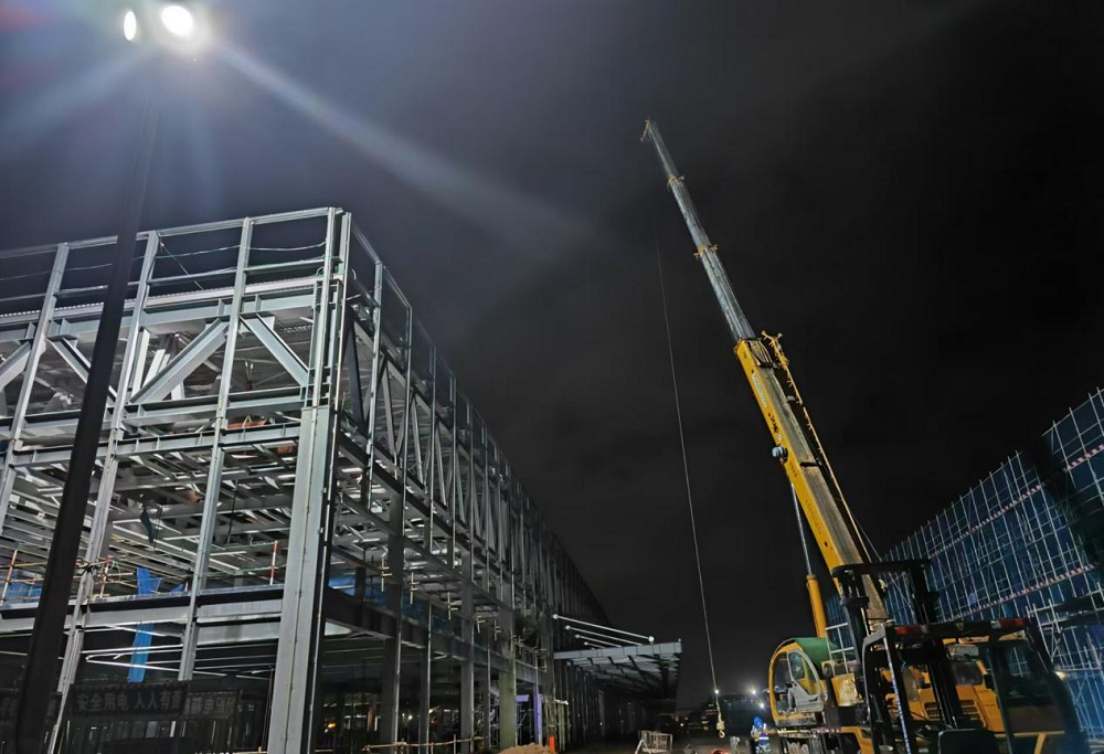 走進夜間施工現(xiàn)場,燈光如晝,機械轟鳴。從朝陽灑向施工廠區(qū)到夜幕降臨,從夜幕降臨又到朝陽再次升起,每一個忙碌的身影,都是對進度的追求、對品質的堅守、對安全的保障。