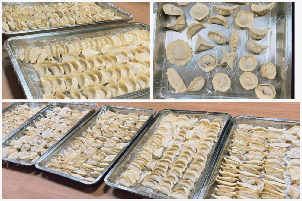 在分公司機(jī)關(guān),會(huì)議室的長(zhǎng)桌上擺滿了各種食材和工具,有新鮮的餃子皮、美味的餡料、筷子、勺等。大家配合默契,歡聲笑語(yǔ)不斷,新手們?cè)谟薪?jīng)驗(yàn)的同事指導(dǎo)下,逐漸掌握了包餃子的技巧,雖然動(dòng)作還有些生疏,但熱情絲毫不減。不一會(huì)兒,一個(gè)個(gè)形態(tài)飽滿的餃子就擺滿了托盤,有傳統(tǒng)的月牙形餃子,也有創(chuàng)意十足的花朵形、元寶形餃子。