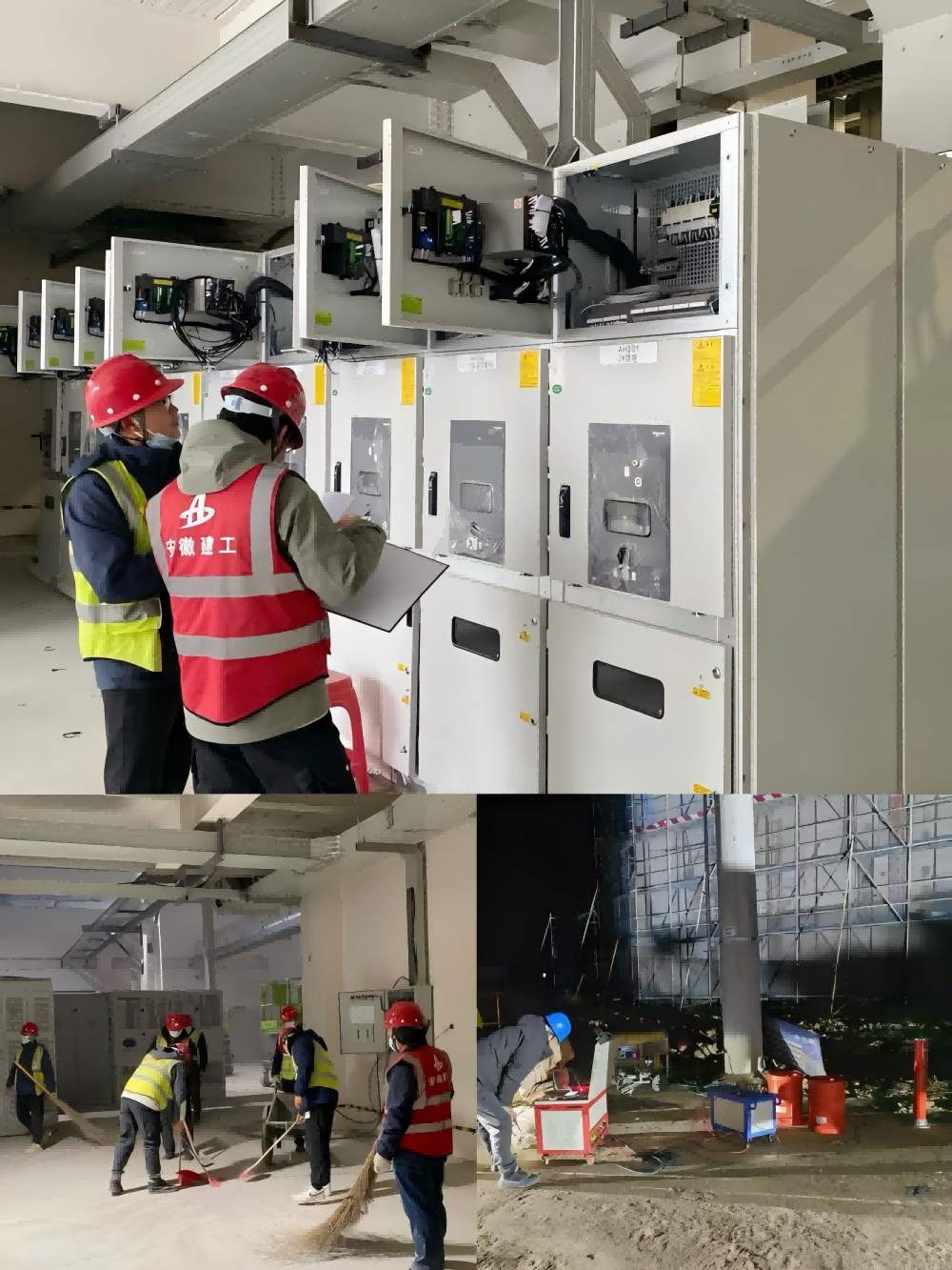 圖為新橋智能制造產業園機電安裝項目高壓柜二次接線核對、外線電纜耐壓試驗、配電房衛生打掃