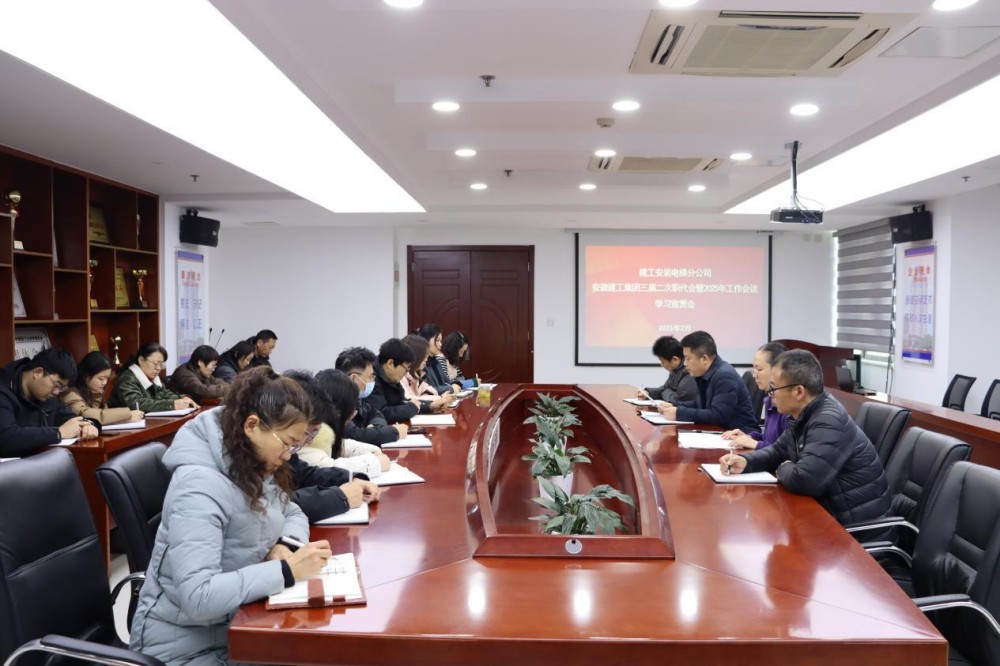 2月13日上午,建工安裝電梯分公司召開專題會議,集中傳達學習集團三屆二次職代會暨2025年工作會議精神,分公司在肥全體員工參會,會議由分公司黨支部書記、經理夏國祥主持。