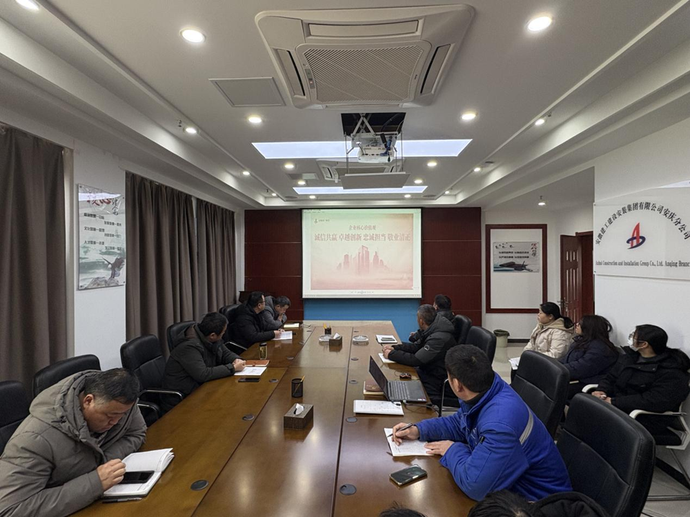 2月13日下午,建工安裝安慶分公司召開安徽建工集團核心價值宣貫會議,會上傳達學習了集團《關(guān)于開展安徽建工集團核心價值觀學習宣貫的通知》文件,并對集團核心價值觀“誠信共贏、卓越創(chuàng)新、忠誠擔當、敬業(yè)清正”進行闡釋講解。