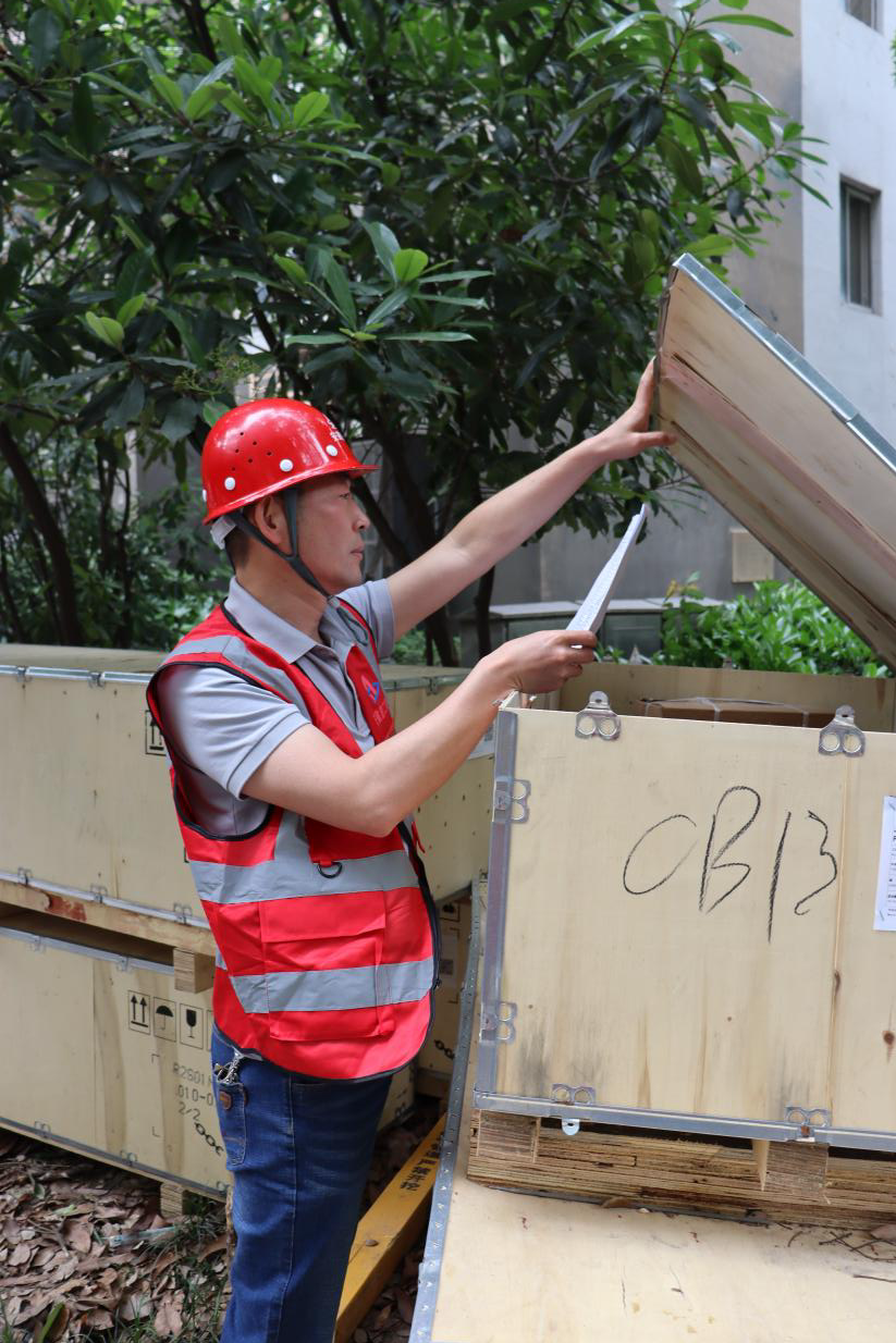 蚌埠2024年住宅老舊電梯更新改造一標(biāo)段項(xiàng)目經(jīng)理正在進(jìn)行電梯開(kāi)箱檢驗(yàn)
