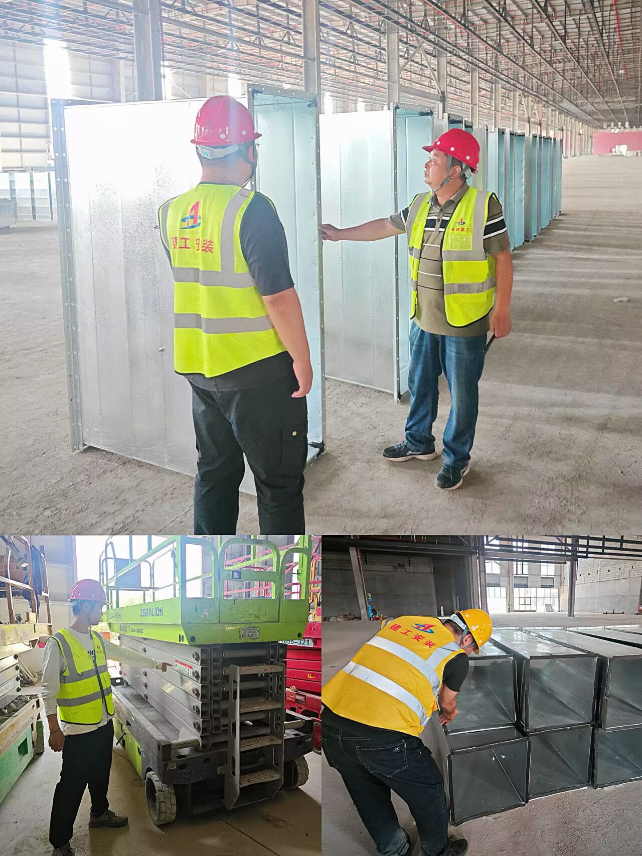 走進項目施工現場,銀灰色的鋼結構廠房在陽光下熠熠生輝,長達百米的標準化車間整齊排列,工業美學與實用功能完美融合。現場管理人員正在監督支吊架整改安裝、冷卻塔設備避雷針安裝交底等,其中污水處理站安裝調試已完成,下一步全體人員將以高效率和高標準推動項目順利通過竣工驗收。