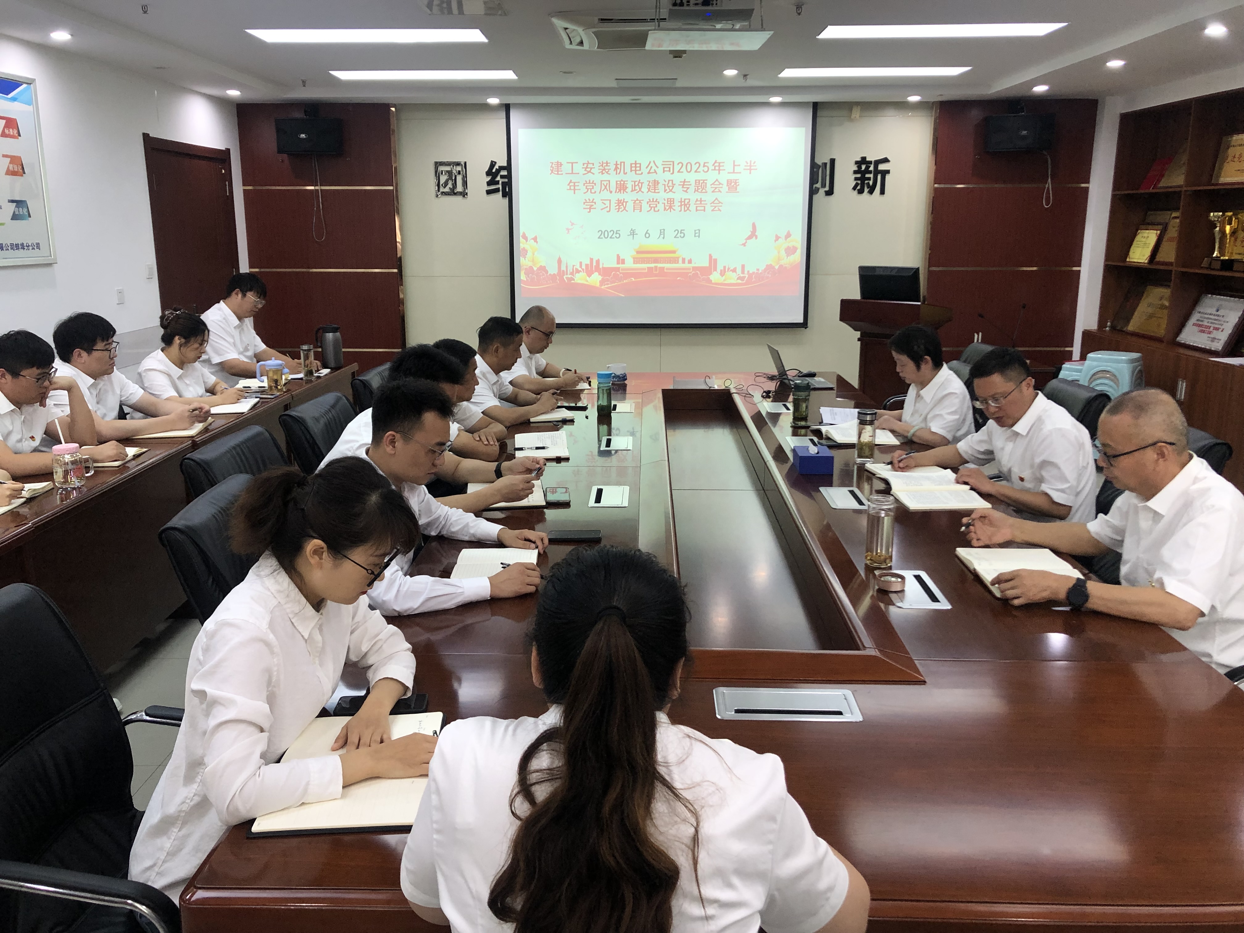 為慶祝中國共產黨成立104周年,扎實推進深入貫徹中央八項規定精神學習教育走深走實,6月25日下午,建工安裝機電公司召開2025年度上半年黨風廉政建設專題會暨學習教育黨課報告會。會議由黨支部副書記許素寒主持。