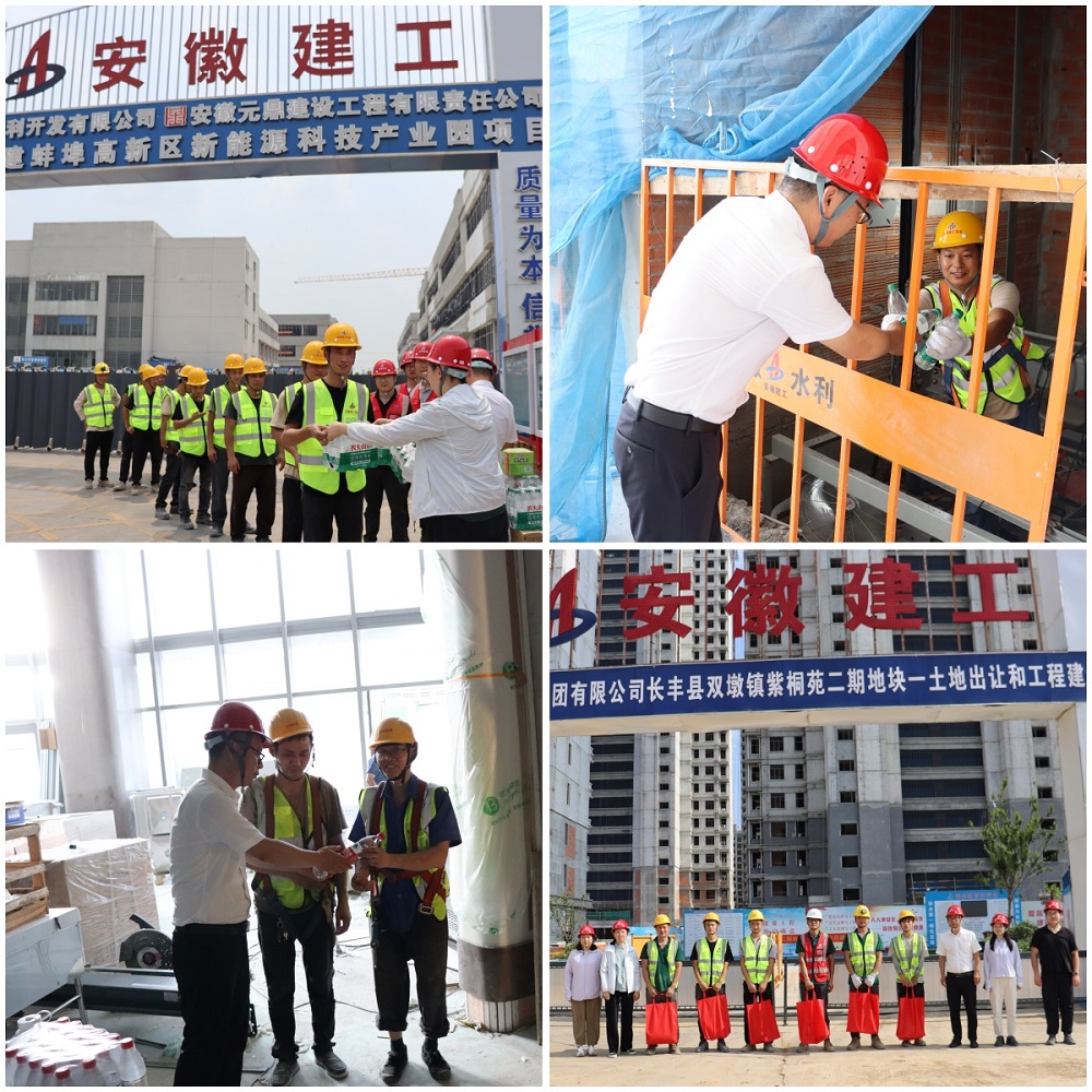 此次活動(dòng)由電梯公司領(lǐng)導(dǎo)班子成員帶隊(duì),先后深入蚌埠高新區(qū)新能源科技產(chǎn)業(yè)園EPC項(xiàng)目、長豐縣雙墩鎮(zhèn)紫桐苑項(xiàng)目、匯金商務(wù)中心S1#樓室內(nèi)裝修設(shè)計(jì)施工項(xiàng)目、潭沖河家園E地塊EPC總承包項(xiàng)目等多個(gè)電梯安裝施工現(xiàn)場進(jìn)行走訪慰問,感謝大家在高溫下堅(jiān)守崗位,并將礦泉水、綠茶、人丹、藿香正氣水、風(fēng)油精、毛巾等防暑降溫用品一一送到職工手中。每到一個(gè)項(xiàng)目,慰問組都詳細(xì)了解項(xiàng)目進(jìn)展以及員工生產(chǎn)生活情況,認(rèn)真傾聽一線員工的心聲,著重強(qiáng)調(diào)安全生產(chǎn)工作,叮囑項(xiàng)目部高溫天氣要做好防暑降溫措施,合理安排高溫工作時(shí)間,做好高溫下作業(yè)人員防護(hù),時(shí)刻把安全生產(chǎn)牢記于心,全力保障員工的健康和安全。